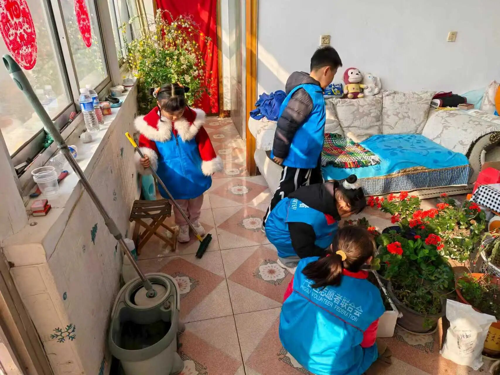 活动当天,青年志愿者们带着扫帚、抹布、整理箱等清洁工具,满怀热忱地如约来到村内孤寡老人家中。大家分工明确、协作默契、干劲十足,有的俯身擦拭门窗、桌椅等家具,将积尘一一清除;有的细致清扫院落角落、拖洗室内地面,不放过任何一处卫生死角;有的耐心帮老人叠放衣物、整理生活杂物,把杂乱的房间收拾得井然有序。忙完手中的清洁工作,志愿者们围坐在老人身边,与老人促膝长谈、拉家常、话冷暖,细心询问老人的身体状况、饮食起居和实际需求,认真倾听老人的心声与过往回忆,轻声叮嘱老人注意添衣保暖、按时作息、保重身体。一句句关切的问候,一声声温暖的叮嘱,一次次耐心的陪伴,让老人们的脸上漾起了幸福的笑容。
