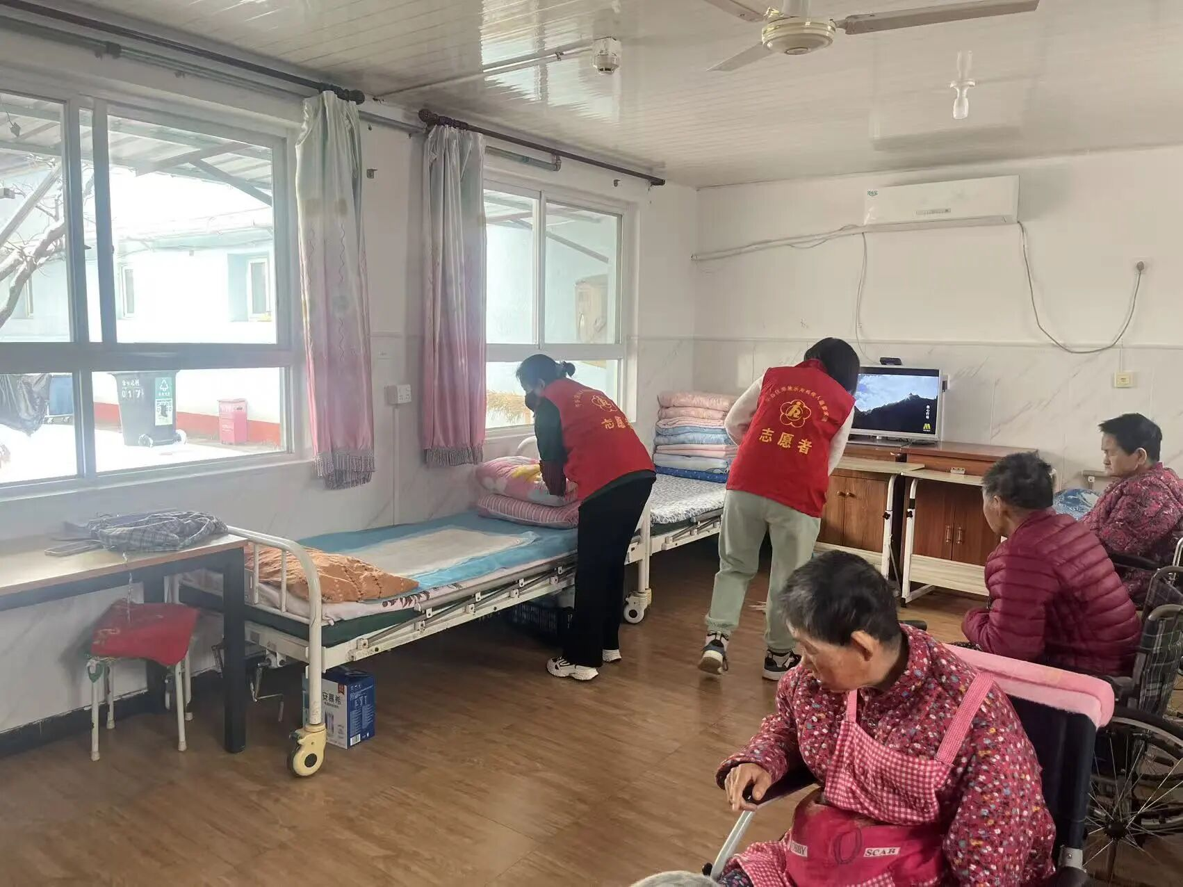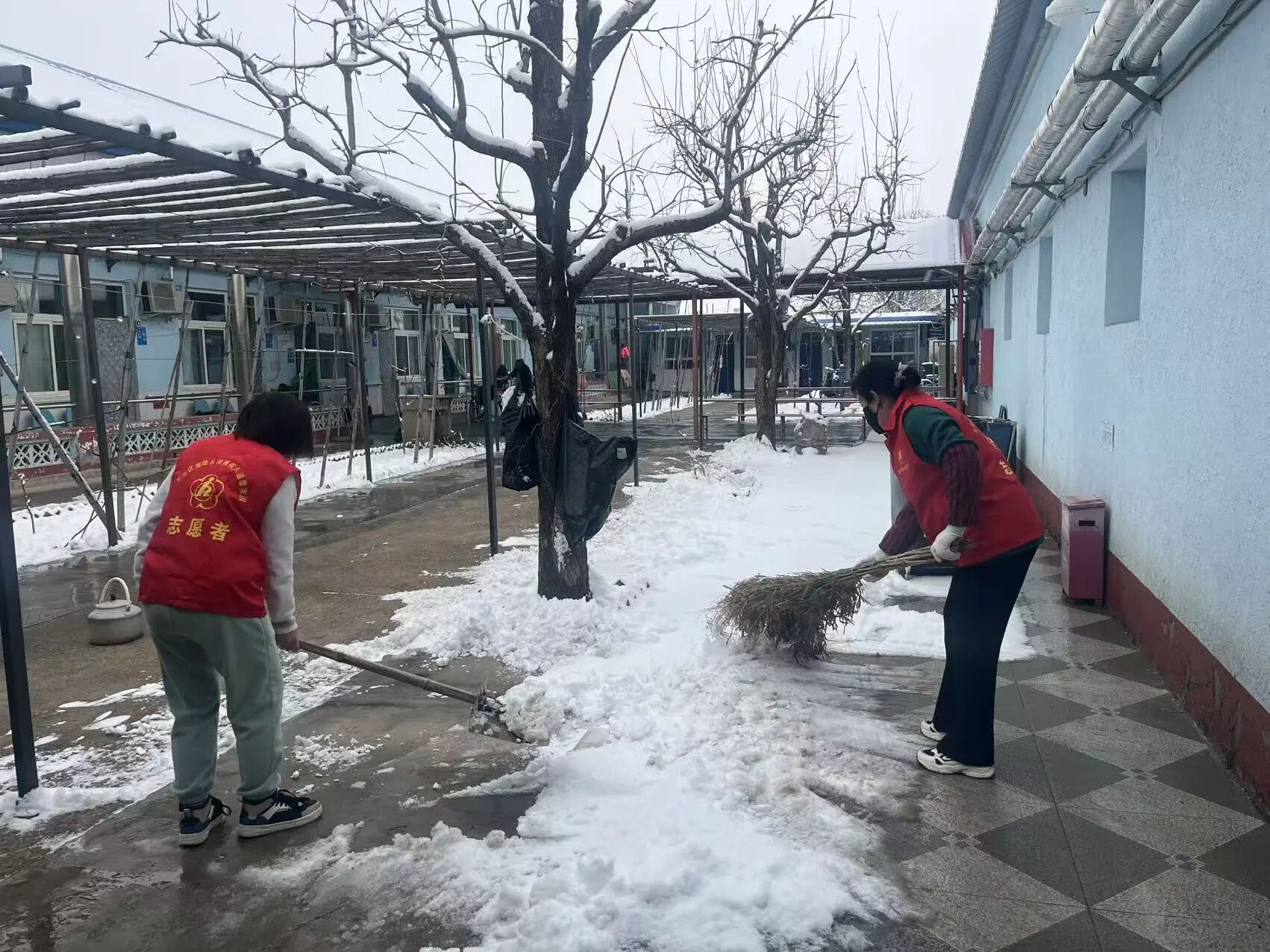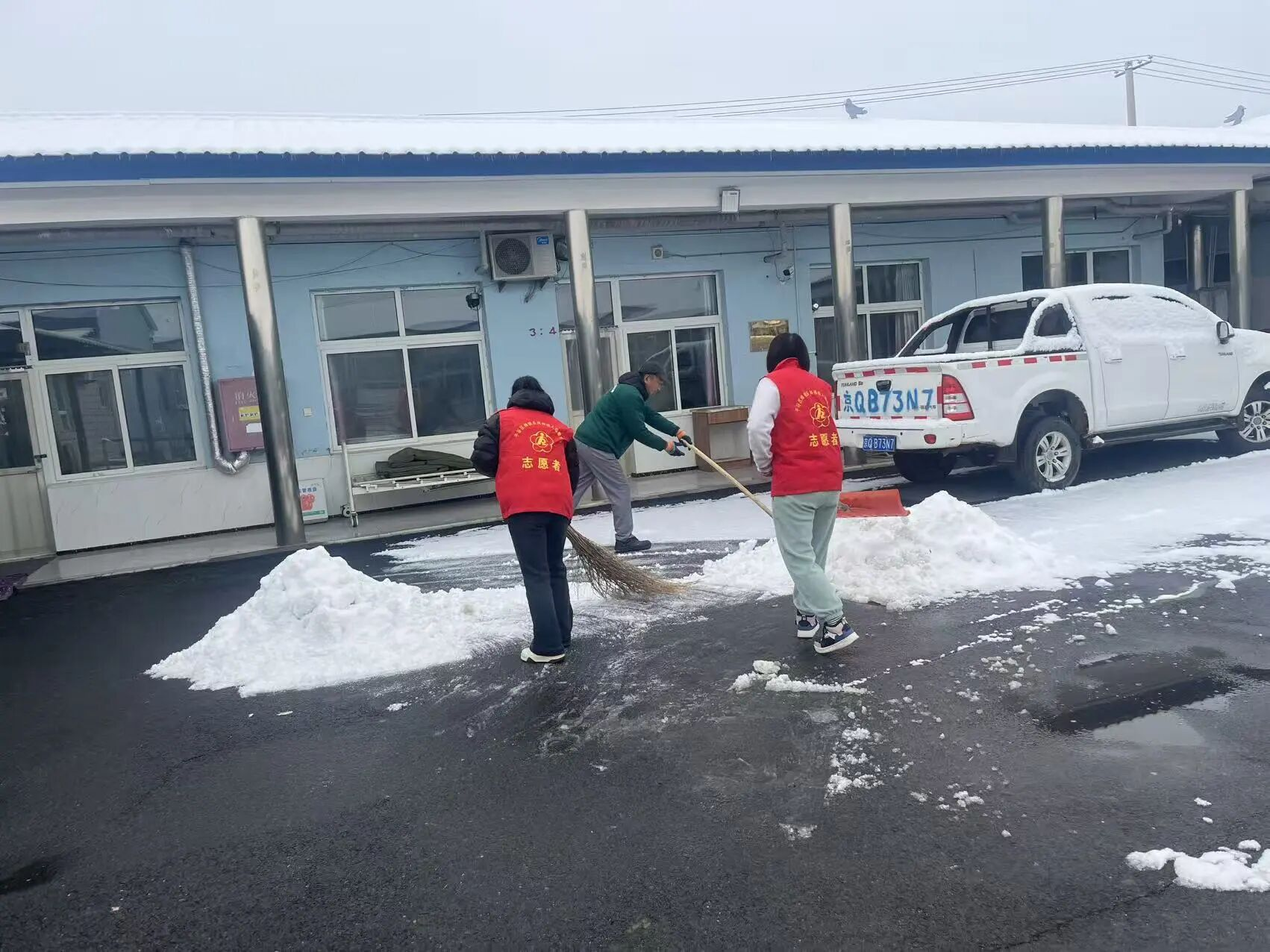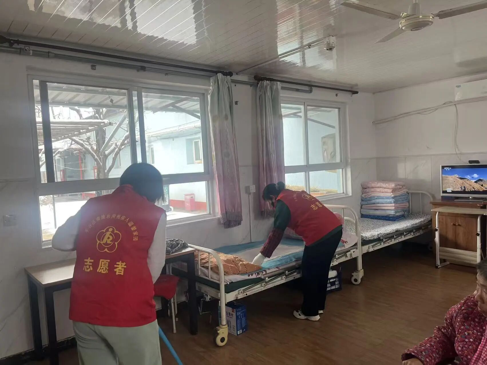 志愿者们怀揣着热忱之心走进公爷坟敬老院,全身心投入到志愿服务中。针对院内行动不便的老年群体,志愿者们细致打扫屋内卫生、规整床铺衣物,帮老人们营造干净整洁的居住环境;考虑到积雪影响老人日常出行安全,志愿者们合力清扫院内积雪、清理路面杂物,消除出行隐患,用贴心举动守护老人出行平安。