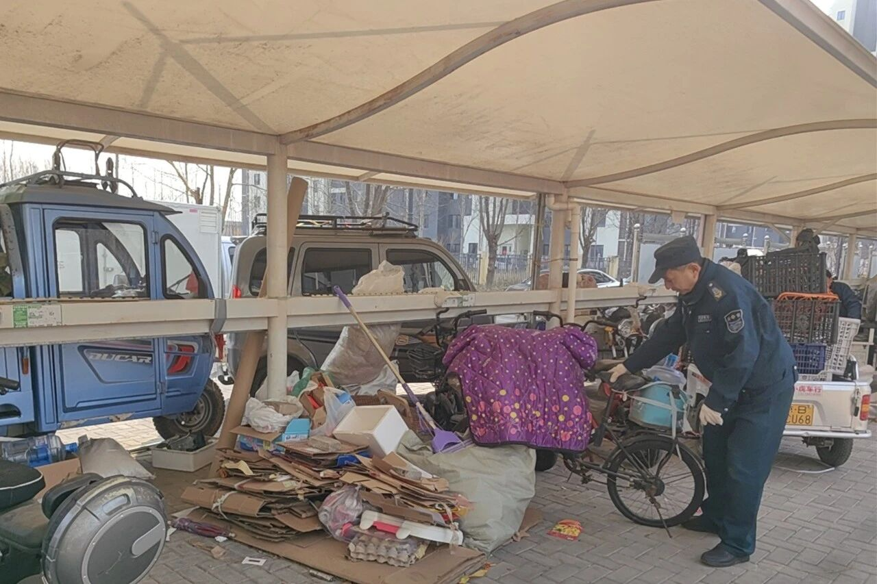 此次整治主要对小区电动车充电车棚内堆放杂物挤占公共空间问题进行集中清理。清理过程中回迁村及物业充分发挥“人熟、地熟、物熟”等优势,精准找到堆物主,并协助居民主动清理车棚堆物,帮助居民把车棚堆放的闲置废品联系专人回收变卖,并将车棚卫生进行统一清扫。由物业将无人认领的杂物统一搬运至临时暂存点。