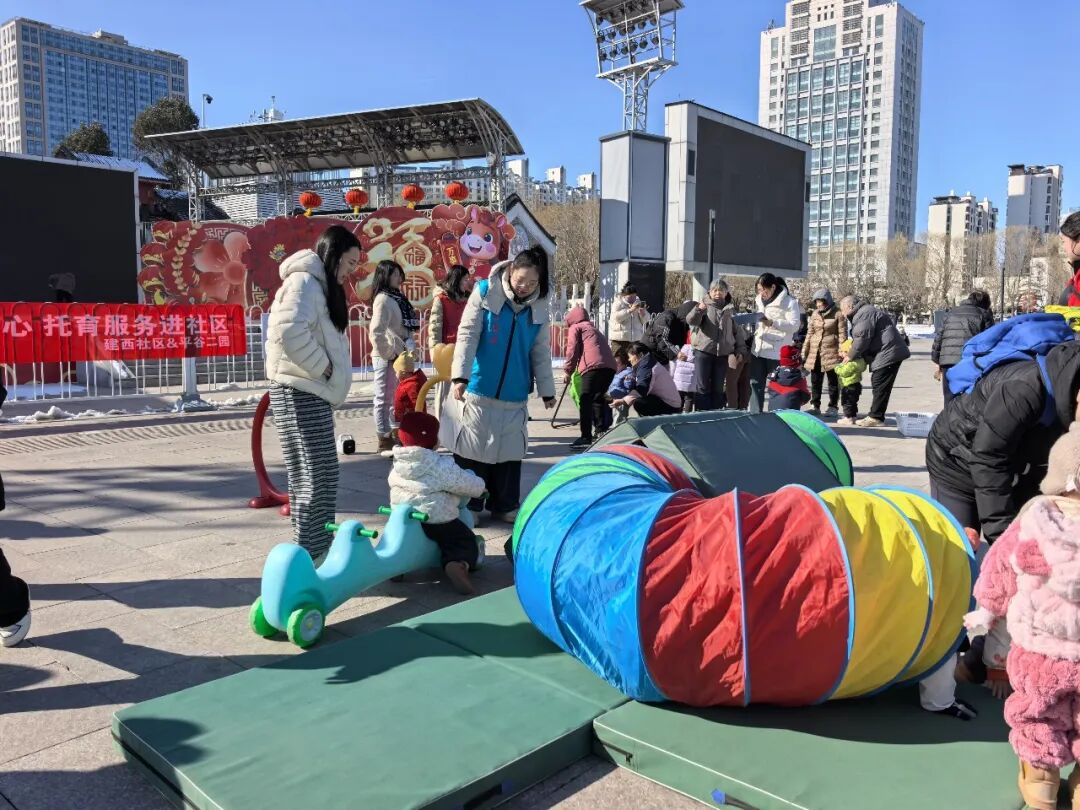 为深入推进托育服务普惠化、社区化发展,搭建幼儿园与社区家庭的沟通桥梁,近日,建西社区联合辖区平谷第二幼儿园,在世纪广场北侧成功举办“托育进社区”亲子趣味活动。活动专为低幼龄儿童量身打造趣味游戏体验,吸引了众多家长携子踊跃参与。