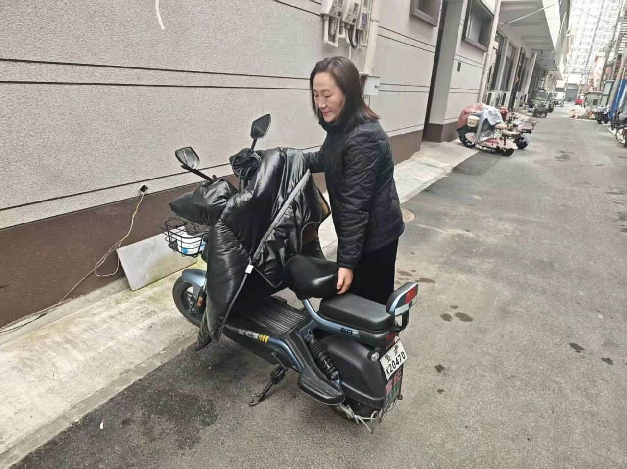 胡同“理车员”:扶正电动车,畅通出行路