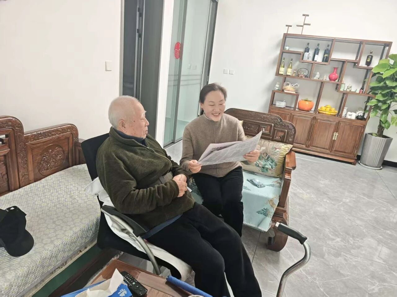 社区里几位高龄独居老人视力退化、行动不便,无法独立阅读报纸,了解外界信息成了难题。干春艳得知后,主动承担起 “读报员” 的角色。她会提前在家把报纸上的重要新闻、实用养生知识圈画出来,带着报纸上门,坐在老人身边轻声朗读。她不仅会清晰念出内容,还会耐心解答老人的疑问,陪老人聊聊家常、说说心里话,叮嘱他们注意添衣保暖、保重身体。有位老人感慨道:“小干读报比收音机还贴心,有她来,我这屋子都热闹多了,心里也暖烘烘的。”