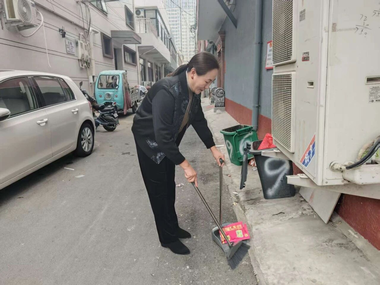 胡同是社区居民日常通行的主要通道,偶有居民图方便将电动车随意停放,导致道路狭窄、行人难行。干春艳出门时总会特意留意胡同路况,遇到歪歪扭扭挡路的电动车,她会先查看附近是否有车主,若暂时无人,便小心翼翼将车辆一一扶正、摆放整齐,为居民打通畅通的出行通道,让居民出门再也不用“绕着走”。