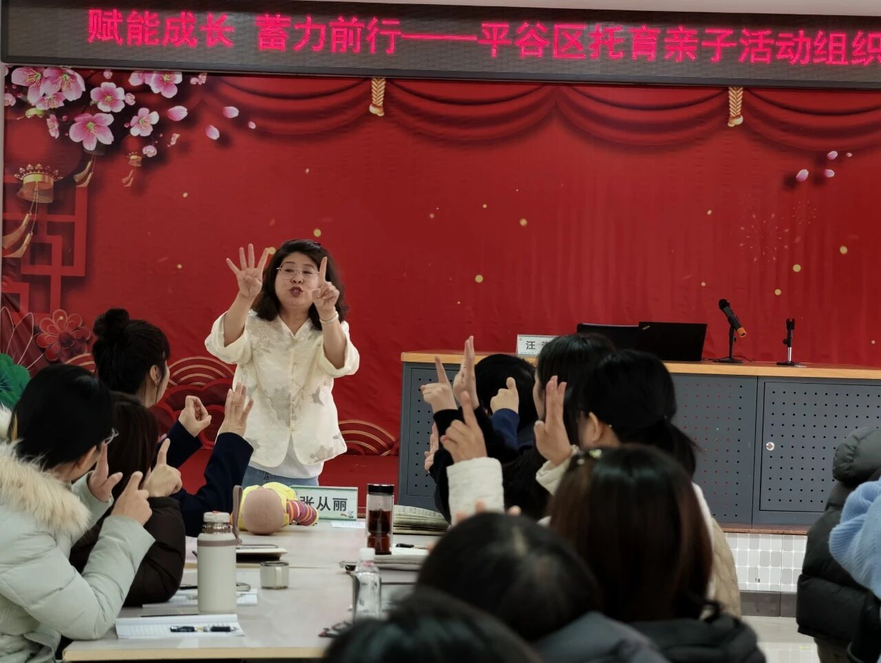 首周活动的顺利开展,为后续工作积累了宝贵经验。为进一步提升托育亲子活动专业水平,3月10日,区教委学前科在平谷一园托育综合服务中心举办专题培训,特邀早教领域专家汪涛为全区120名托育教师授课。