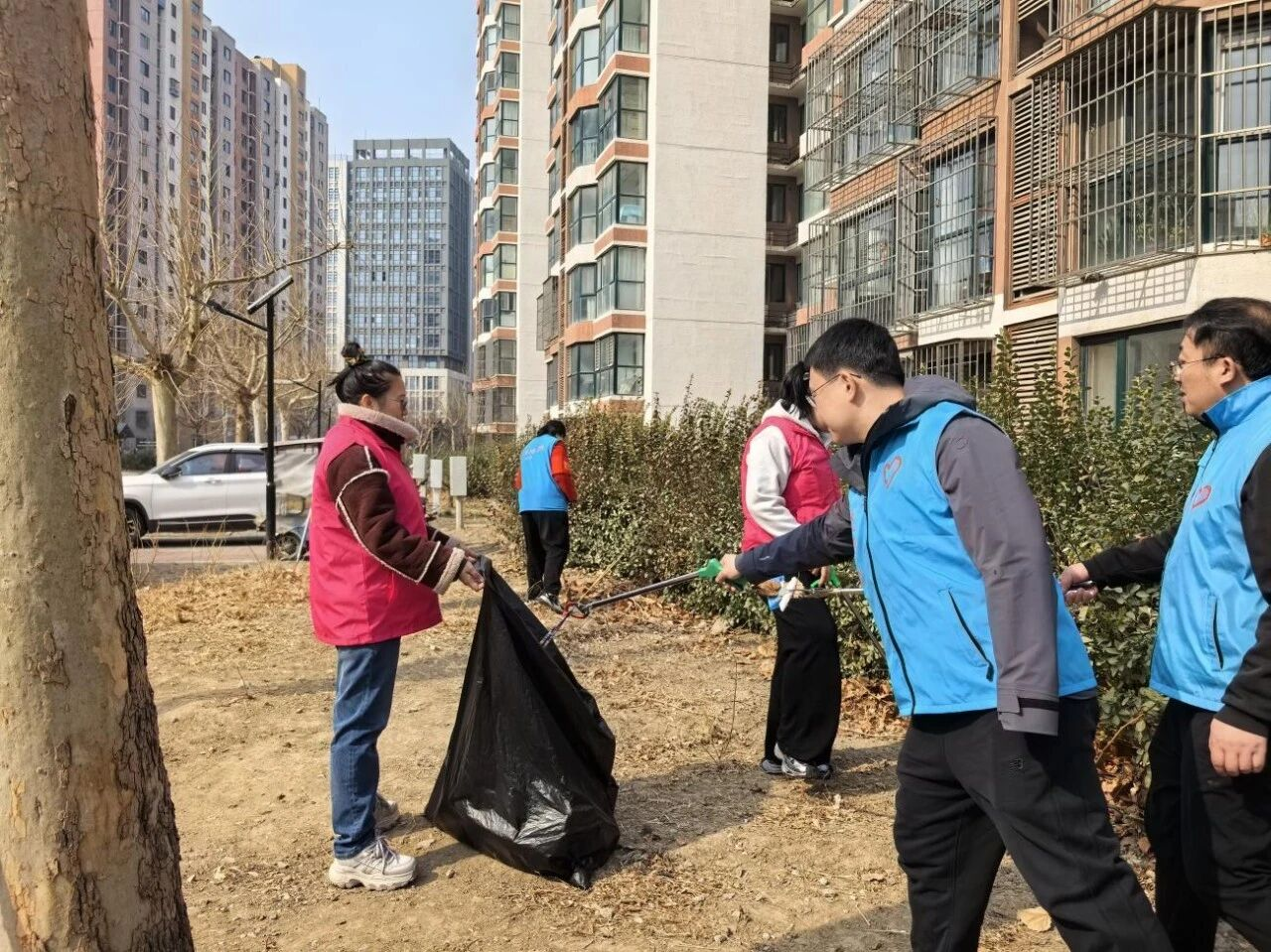 活动当天,志愿者们带着夹子、铁锨、垃圾袋等工具,有序清理辖区林地、绿化带等公共区域白色垃圾,针对林地边角、草丛深处等卫生死角进行重点清理。志愿者们分工协作,不怕脏、不怕累,弯腰俯身、仔细搜寻,不放过任何一处卫生死角。在清理过程中,大家一边认真捡拾垃圾,一边向居民宣传环境保护知识,呼吁大家自觉爱护花草树木,不乱扔垃圾、不损坏绿地,共同守护整洁优美的家园环境。