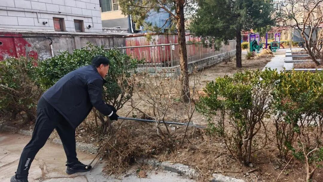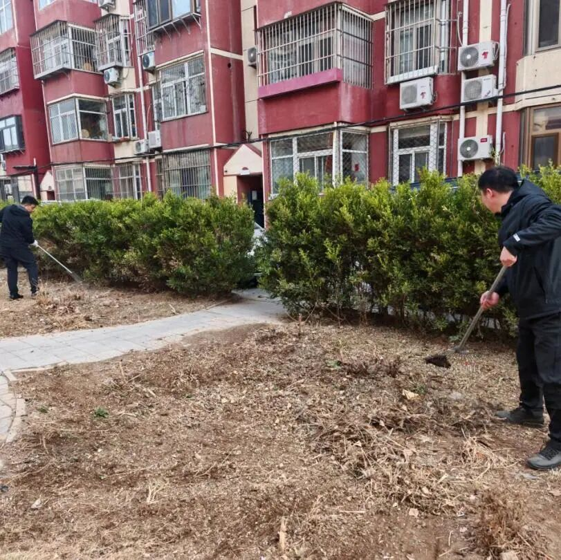 在整治现场,社区工作人员全员出动,与物业人员并肩作战。大家挥耙楼草、搬运石块、清理枯枝,分工协作、干劲十足。有的工作人员徒手捡拾砖块,有的合力搬运粗大枝干,汗水浸透了衣衫却毫无怨言。这种“社区牵头、物业主责、全员参与”的实干场景,正是“三交一管”机制落地生根的生动写照。