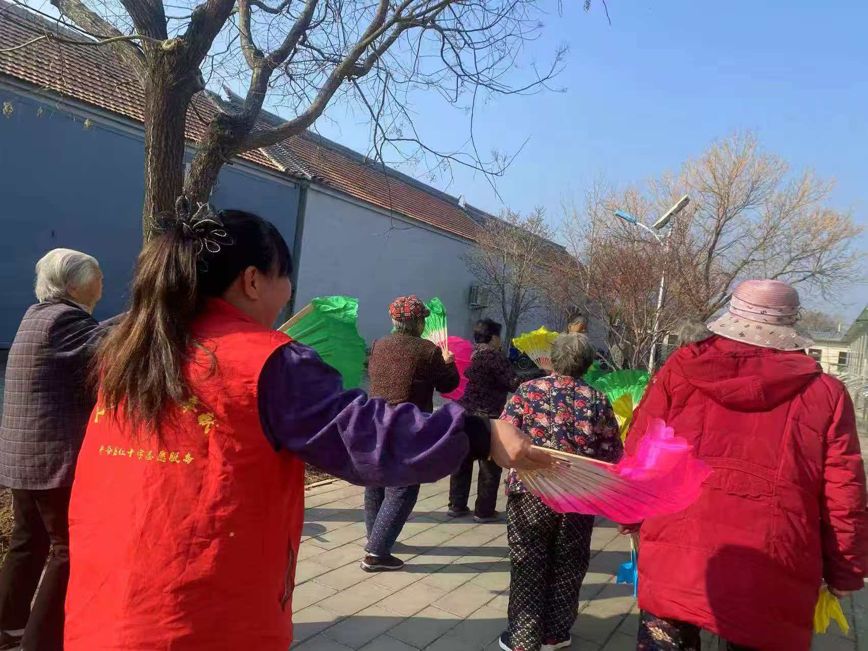 为丰富老人们的精神文化生活,志愿者们带领老人开展了趣味文体活动。在明媚的阳光下,大家手持彩扇,跟着轻快的节奏翩翩起舞,红、绿、黄等色彩的扇子在阳光下翻飞,老人们脸上洋溢着幸福的笑容,现场充满了欢声笑语,让春日的小院格外热闹。