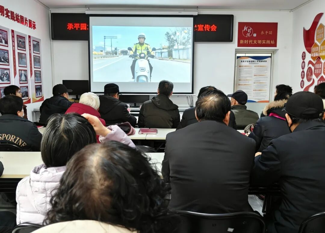 承平园社区精心组织开展“一盔一带”交通安全专题宣传活动,通过集中宣讲强化宣传效果。活动现场组织居民观看交通安全警示视频,用真实事故案例敲响安全警钟,详细讲解安全头盔正确佩戴方法、交通安全法律法规等内容,以沉浸式、体验式宣传,引导居民自觉养成“戴盔出行、安全相伴”的良好习惯。