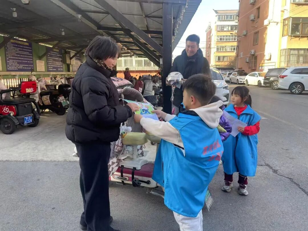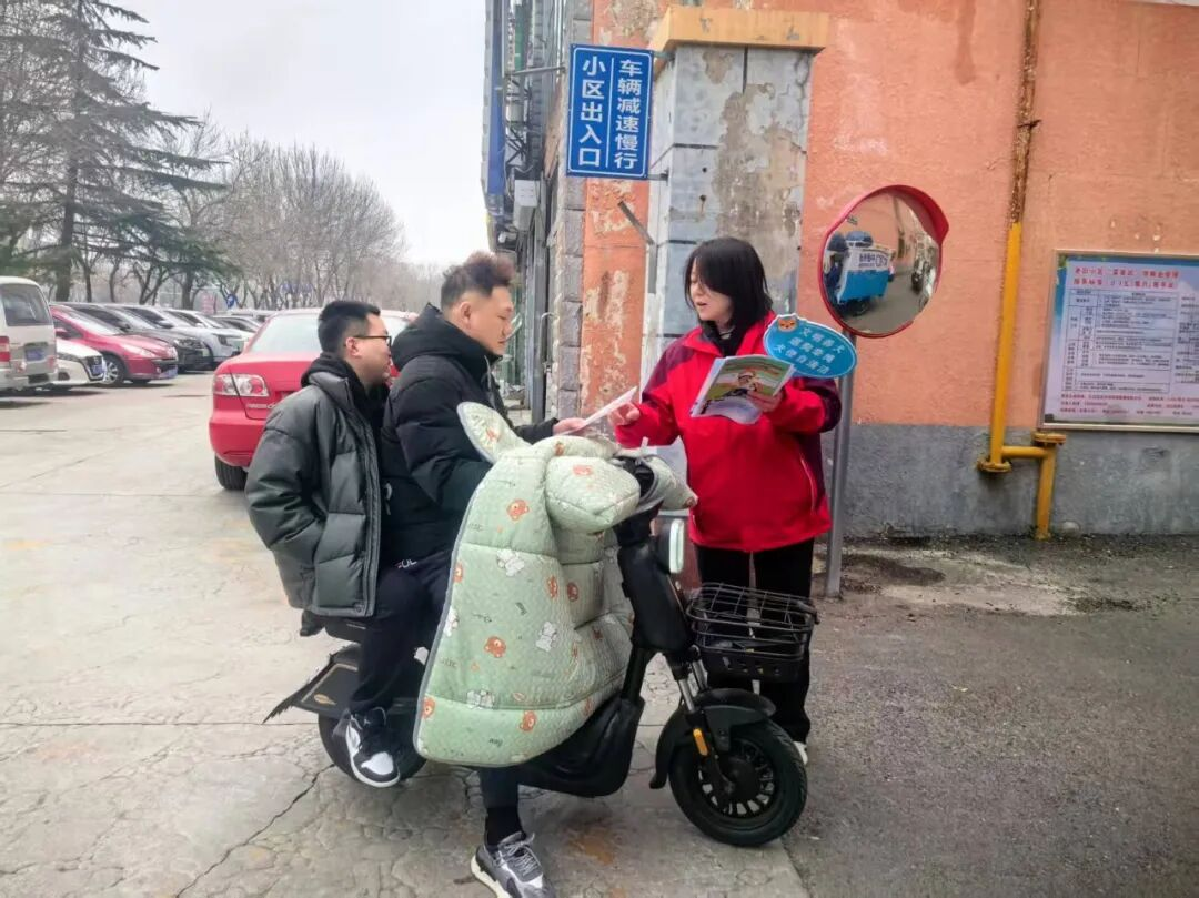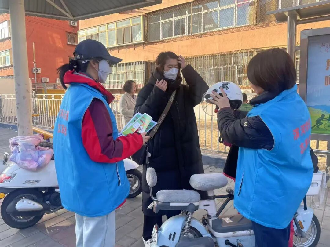 紧盯居民出行关键时间点,在上下学、上下班等交通流量高峰时段,承平园社区网格员与志愿者在小区出入口定点值守,开展现场宣传劝导活动。主动向过往居民发放“一盔一带”宣传彩页,实时提醒骑行居民规范佩戴安全头盔,及时纠正不文明出行行为,把宣传劝导做到居民出行的高峰时段,在关键节点筑牢安全防线,切实提升居民即时安全意识。