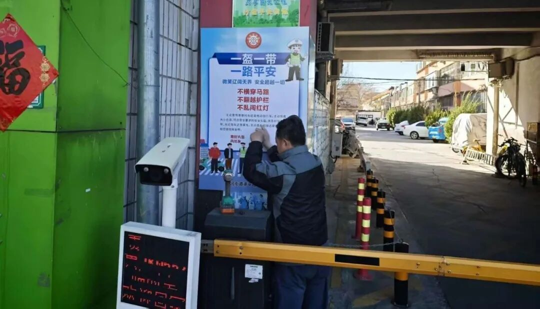 承平园社区针对居民出行重点区域,搭建多元化线下宣传平台。社区在小区主要出入口循环播放“一盔一带”安全宣传语音,用温馨提示的方式提醒进出居民规范佩戴头盔;在小区5个出入口、电动车充电车棚等重点区域张贴宣传海报、安装宣传展板,以图文并茂的形式强化视觉引导,让安全理念融入居民日常生活场景,让居民进出家门都能看到、听到、感受到。