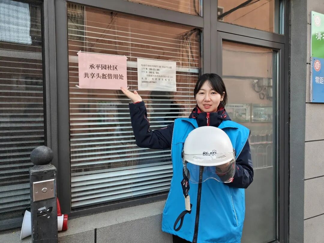 为切实解决居民临时出行忘戴头盔的实际难题,承平园社区推出共享头盔便民服务项目,在小区出入口设置共享头盔取用点,以安全为保障,为遗忘佩戴头盔的居民免费提供头盔借用服务。以便民服务延伸宣传触角,既解决居民出行燃眉之急,又以实际行动引导居民树立“盔不离头、安全随行”的安全出行理念,让交通安全宣传更具人性化、实用性。