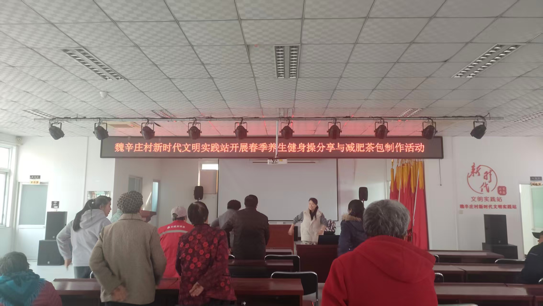 春暖律动茶养轻身,健康新风拂满营。为响应全民健身号召、普及春季科学养生知识,近日,马昌营镇综合文化服务中心、马昌营镇新时代文明实践所(站)联合举办春季养生健身分享与减肥茶包制作活动,将传统养生理念、科学健身方法与草本茶包手作融为一体,让村民在春日里舒展身心、乐享健康。
