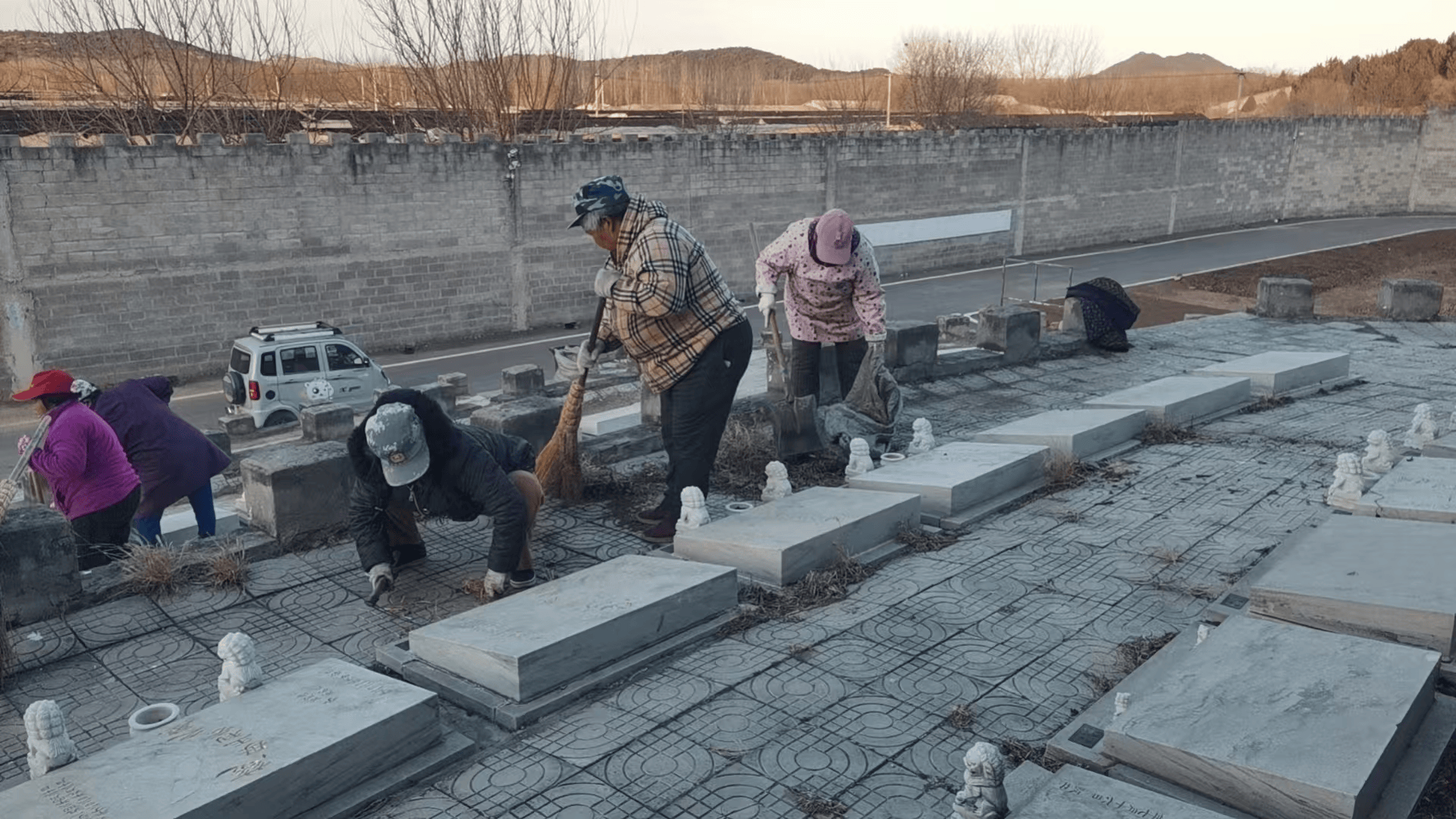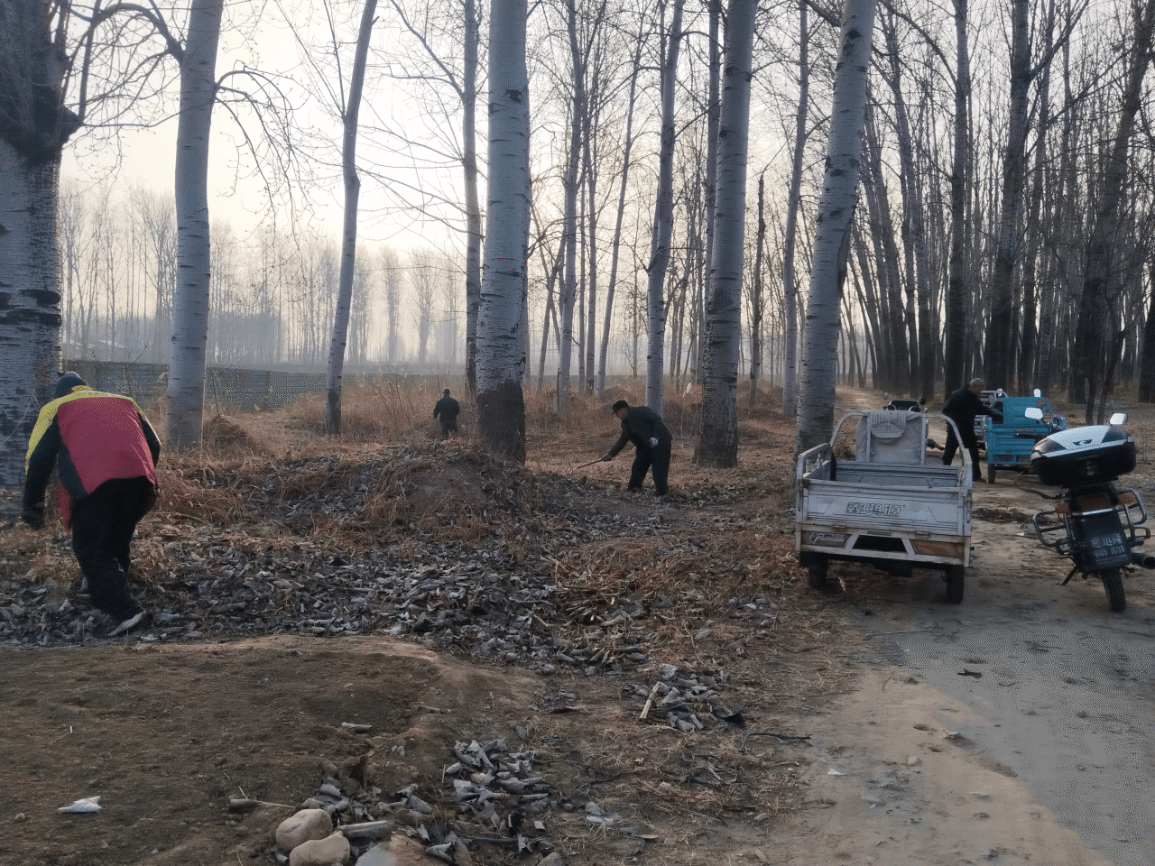 在清理现场,各村护林员、志愿者及保洁人员齐上阵,采取“人工清理+机械清除”相结合的方式,对重点区域进行拉网式排查和地毯式清理。针对林地周边茂密的枯草和落叶,大家利用耙子、镰刀等工具将其归拢成堆,统一清运处理;针对散坟和公墓周边祭祀活动可能带来的火灾风险,工作人员进行了精细化清理,不仅清除了周边的干枯杂草,还对零星散落的残留物进行了仔细清扫,有效降低了火险等级。