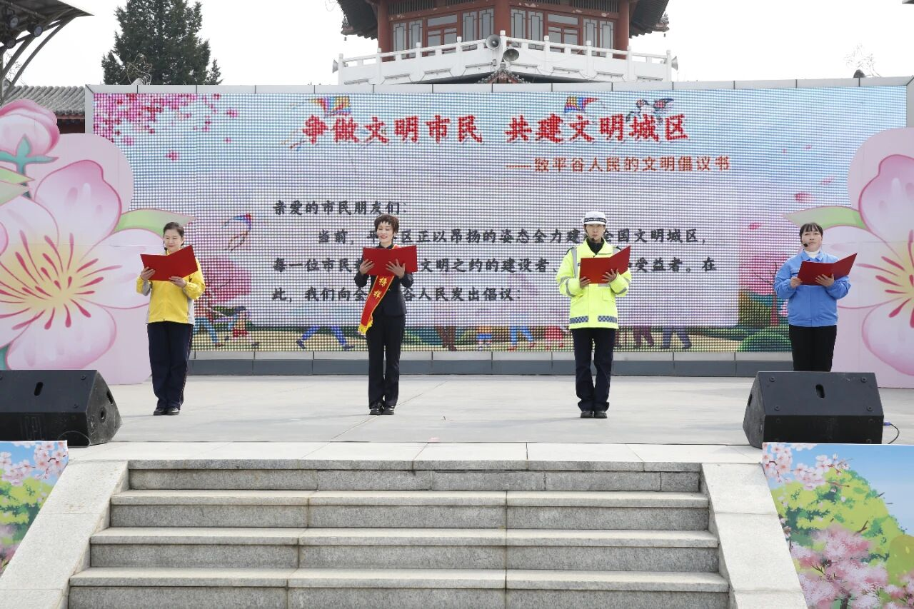 活动在龙狮表演《盛世欢歌》中拉开序幕。活动现场,平谷榜样、环卫工人、辅警、公共文明引导员代表共同宣读“争做文明市民 共建文明城区”倡议书,以榜样力量引领全民文明行动。活动向全体平谷市民发出号召,呼吁大家积极投身城市文明建设,主动争当首都文明市民,以实际行动践行文明理念。
