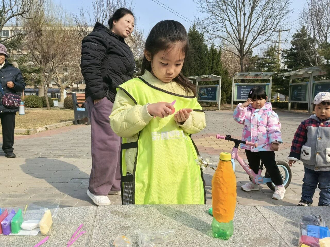 随后,创意手工与实践游戏轮番上阵,孩子们巧用彩泥与废旧塑料瓶,发挥想象力,认真给彩泥“瓶子”点缀装饰,用创意赋予废品新生,将“废弃瓶子”装饰成独一无二的环保作品,直观感受“垃圾是放错地方的资源”。在分组游戏与实践中,孩子们主动沟通、分工协作,不仅提升了团队协作能力,更培养了责任感与环保使命感,不少孩子从腼腆变得主动自信。家长们全程陪伴参与,主动学习分类知识,纷纷表示“要和孩子一起做好家庭垃圾分类”,实现了“教育一个孩子,带动一个家庭,文明整个社区”的辐射效应。活动现场也吸引了不少居民驻足观看、点赞参与,带动了更多家庭关注垃圾分类,营造了“人人参与环保、共建美丽家园”的良好社区氛围。