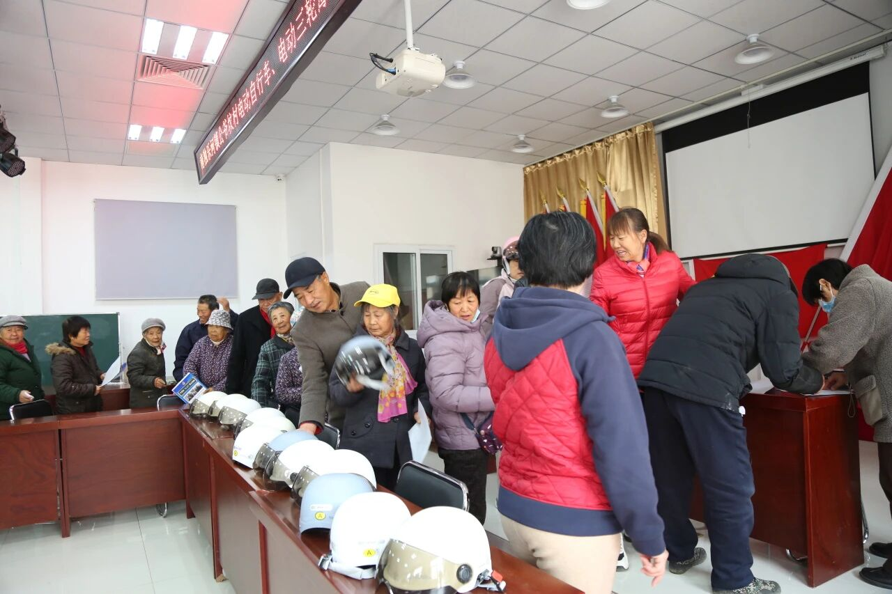 最后,工作人员引导村民有序领取头盔,并在发放过程中示范头盔的正确佩戴方法,耐心叮嘱群众“头盔一定要系紧卡扣,前后不晃动,才能真正起到保护作用,骑车上路千万不能抱有侥幸心理,戴好头盔就是守护自己和家人的平安。”