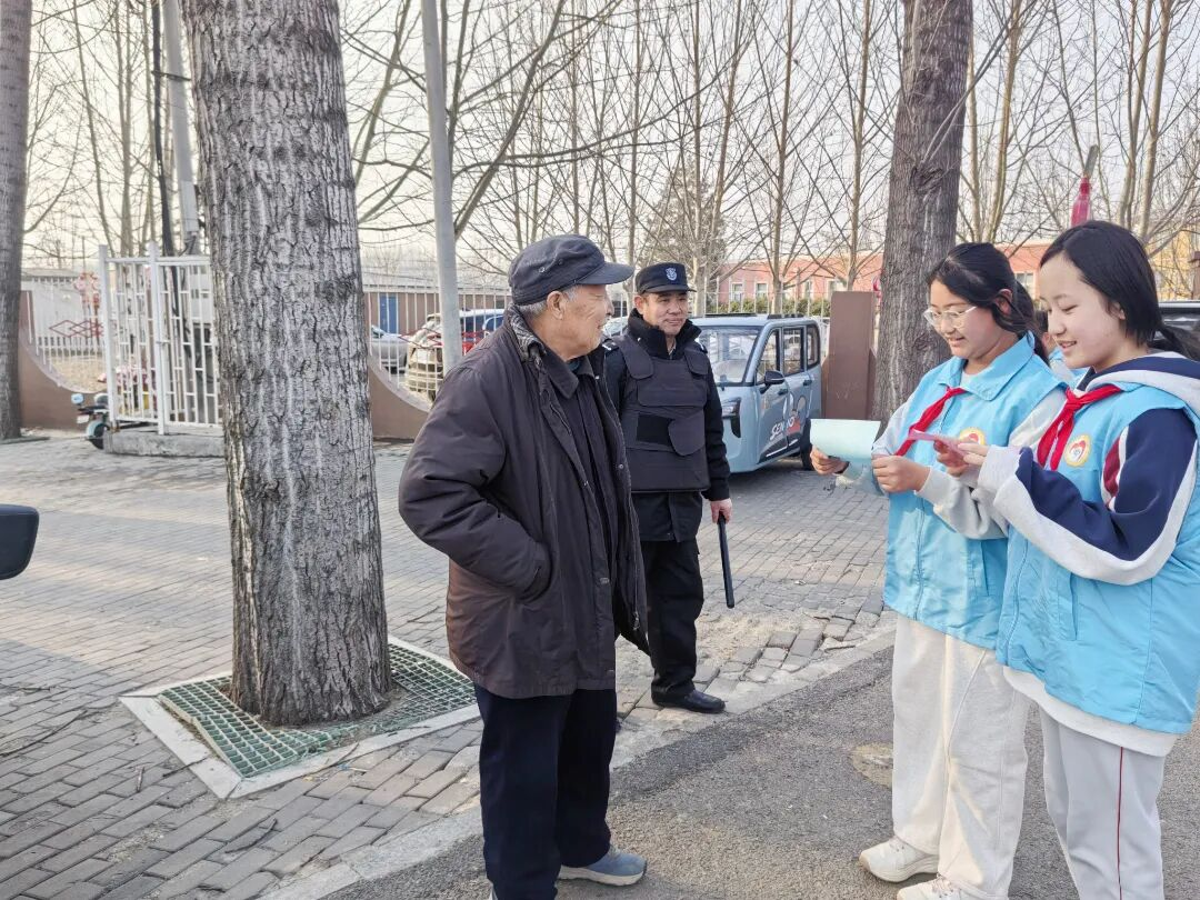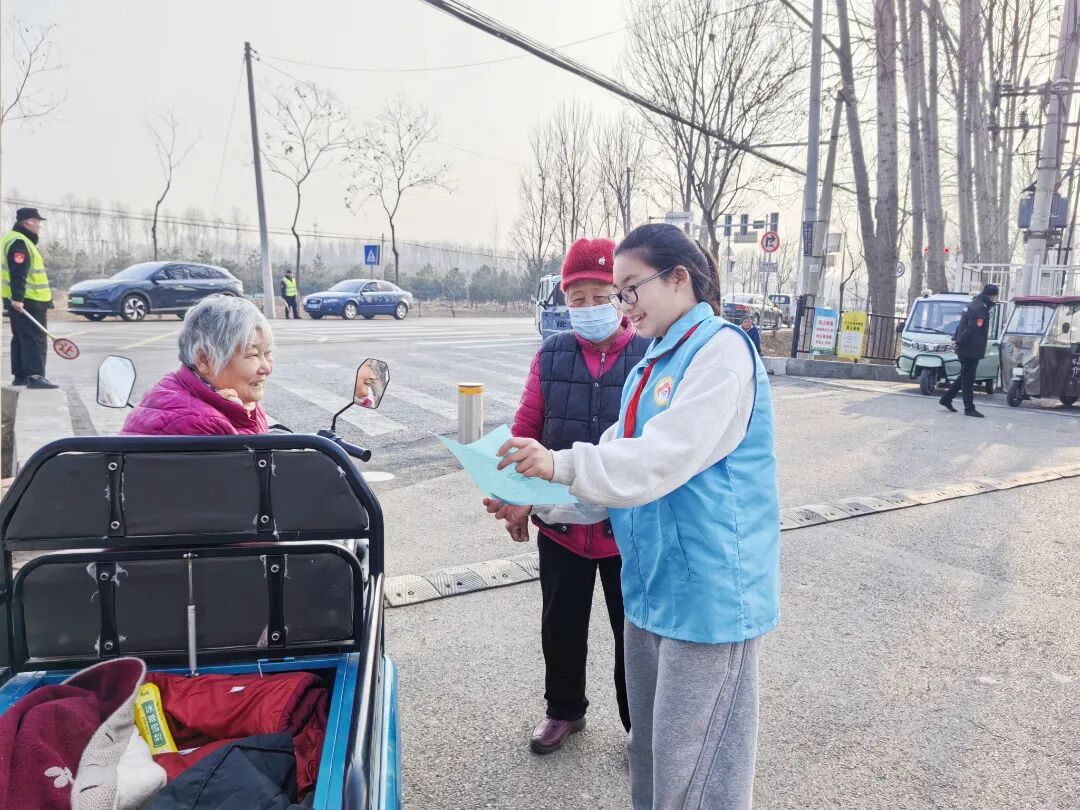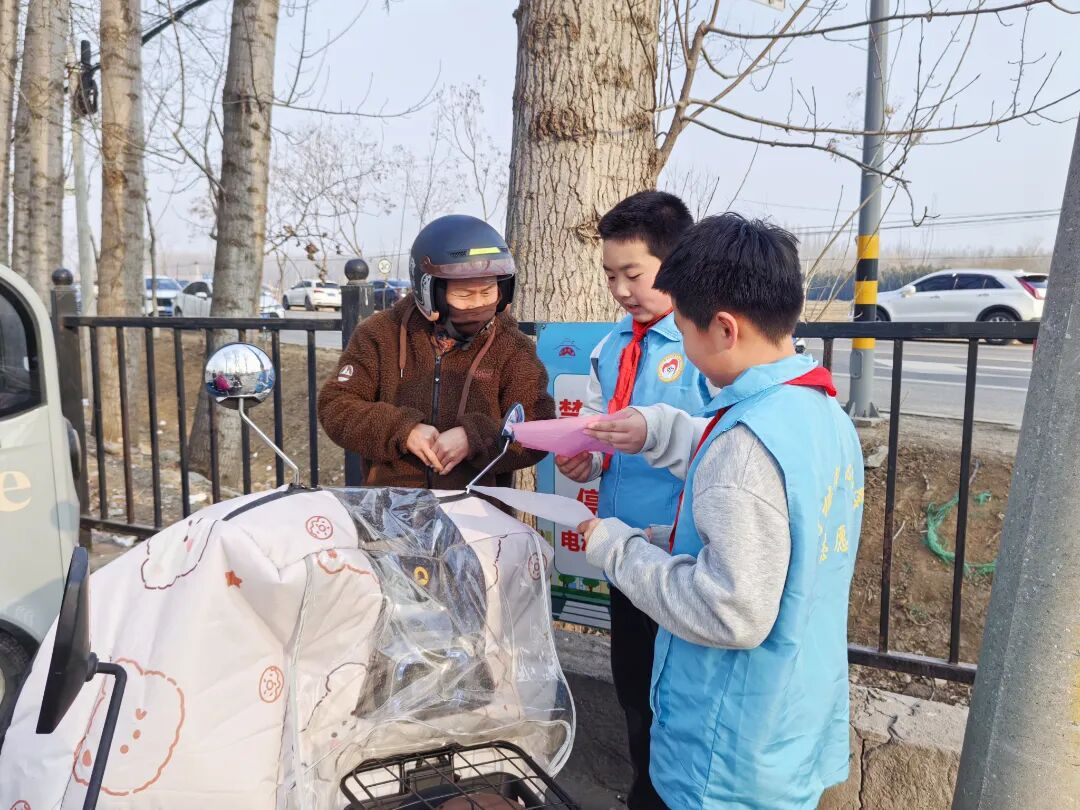 学生们化身交通安全宣传员,向家长发放宣传单,提醒骑乘电动车时规范佩戴头盔,通过“教育一个学生、带动一个家庭、辐射整个社区”的链式传播,让交通安全意识如春风化雨般浸润人心。