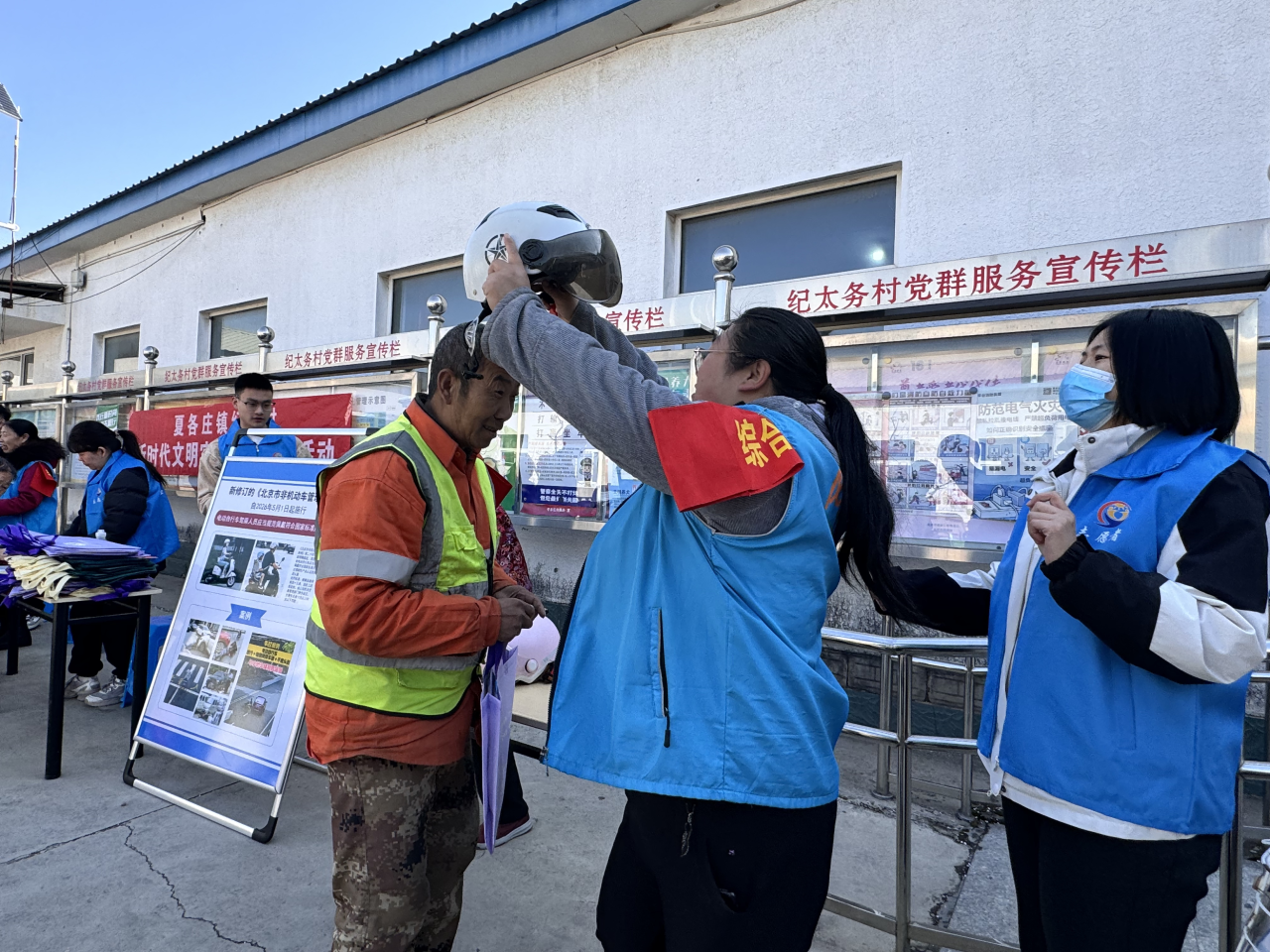 环保宣传区通过趣味问答普及垃圾分类知识;防诈骗宣传结合真实案例讲解电信及保健品诈骗套路,并协助村民安装“国家反诈中心APP”;文明养犬和安全骑行宣传中,志愿者细致讲解规定,演示头盔正确佩戴方法,引导村民规范日常行为。活动累计发放宣传资料200余份,覆盖村民150余人次。