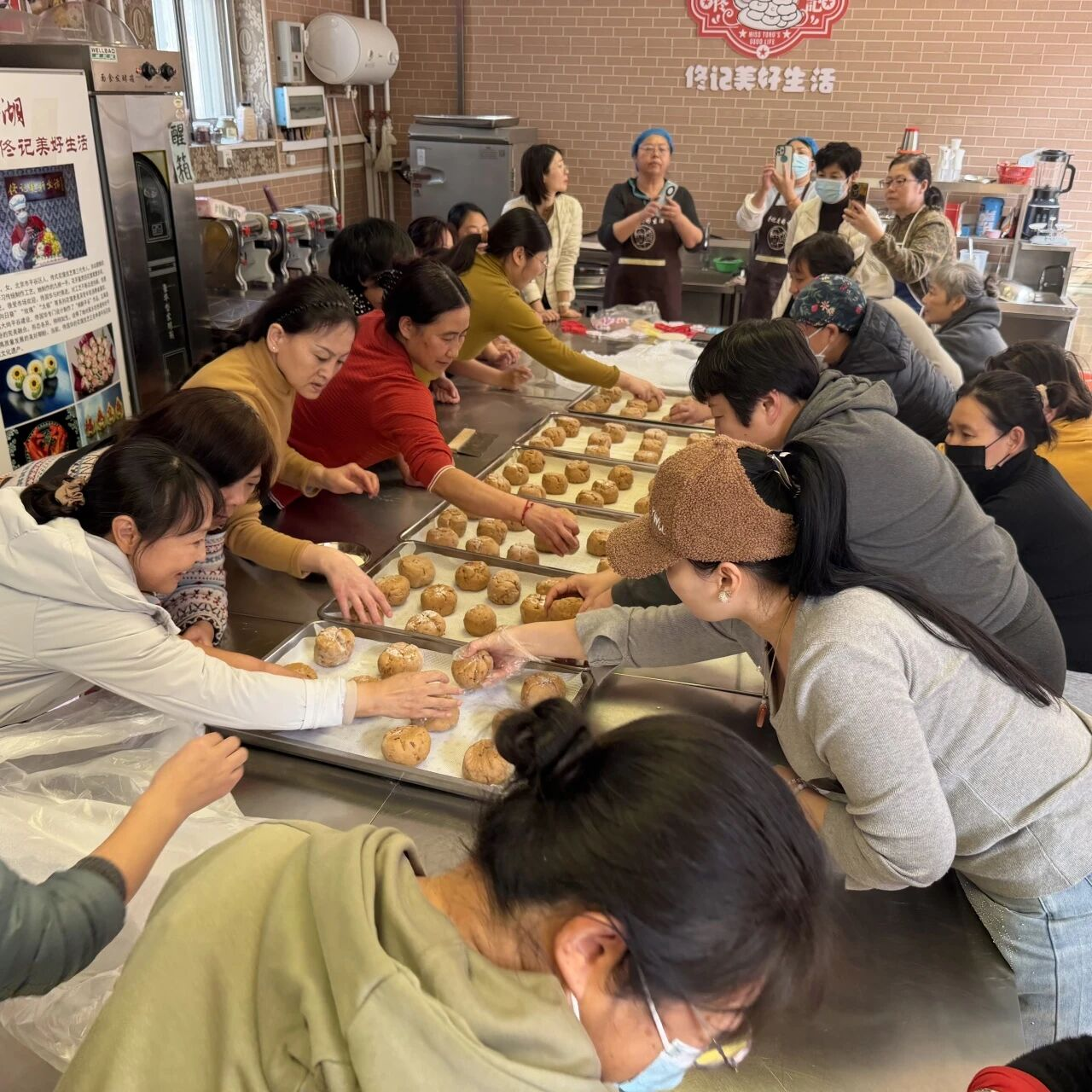 活动现场,培训师现场演示,讲解关键技巧与注意事项,学员们仔细聆听,认真学习。理论讲解结束后,学员们迅速投入实操环节,亲手体验揉面、造型等面点制作的全流程。培训师在现场巡回指导,耐心解答学员在制作过程中遇到的问题,提供针对性的指导。课程结束后,学员们带着自己亲手完成的作品满载而归,将学习成果与家人共同分享。