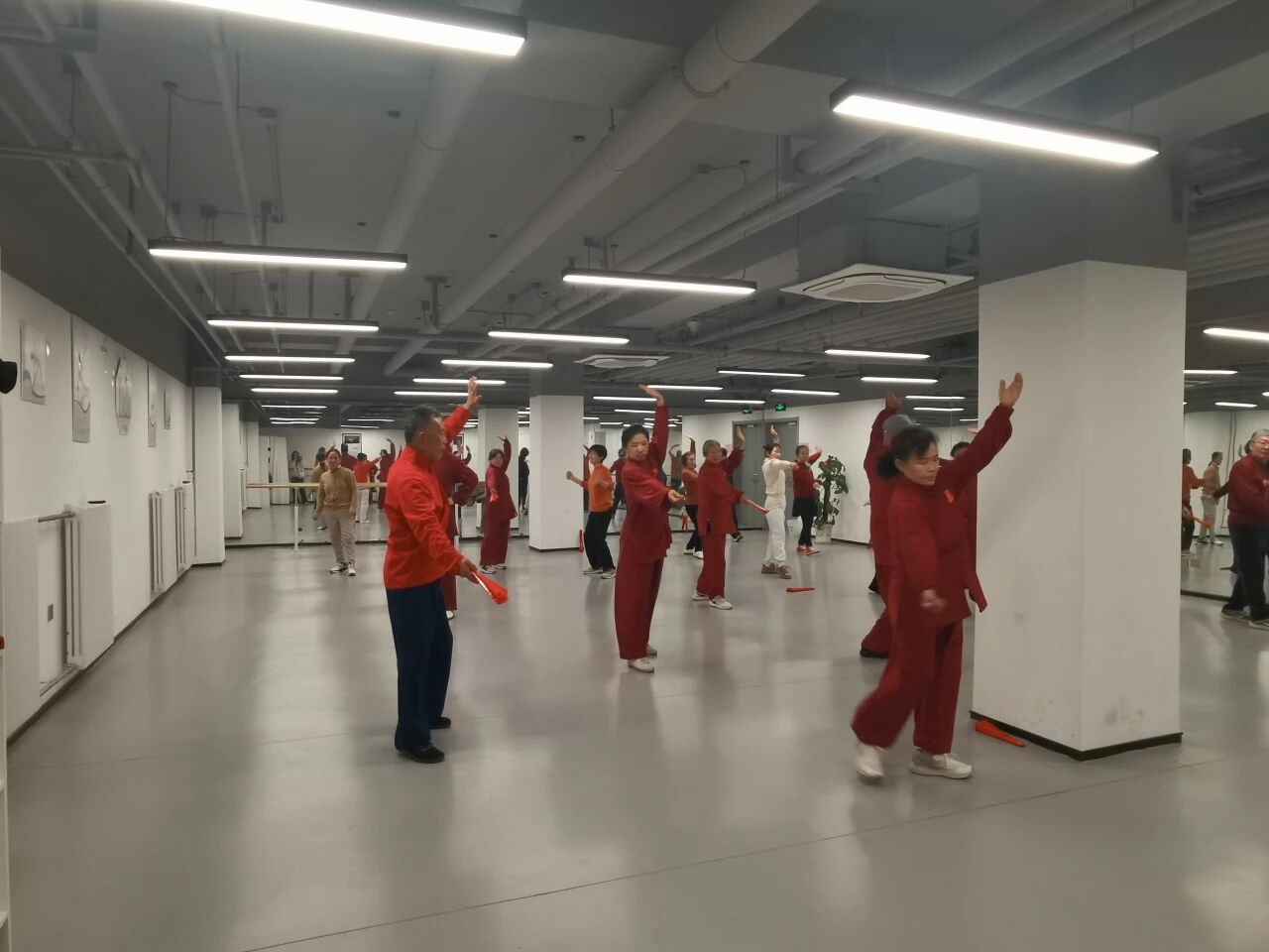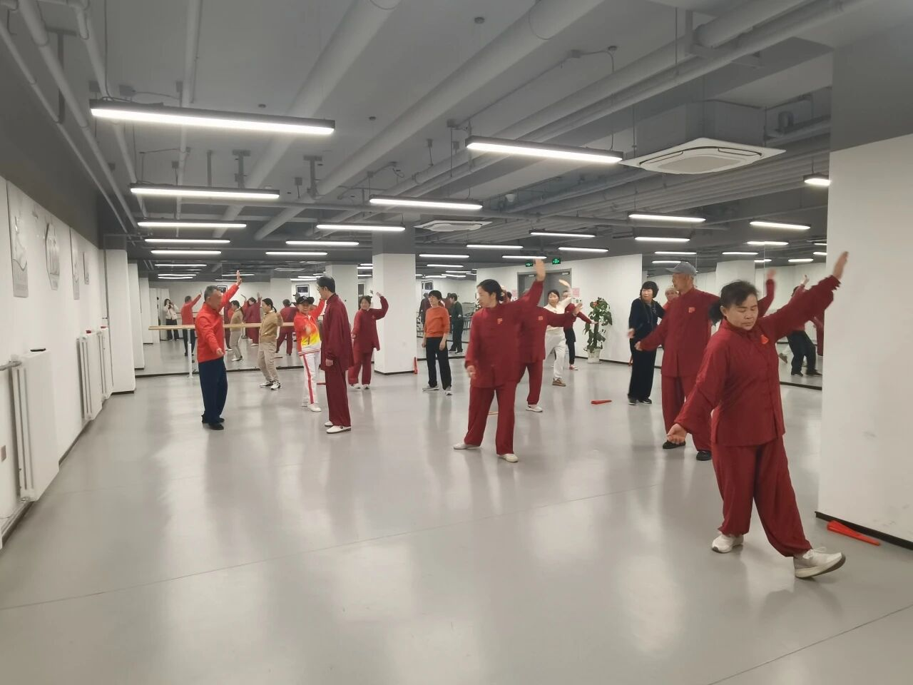 课程在资深教练王老师的带领下进行。充分的集体热身后,首先进入复习环节,内容涵盖“八段锦”、太极扇及太极拳《我的祖国》。王老师不仅进行标准示范,更细致穿行于学员之间,耐心纠正动作细节。三套经典功法复习完毕,老师又为大家引入新课程——太极剑。面对零基础居民,从握剑姿势、基本步法及简易套路教起,引领大家体验剑随身走、刚柔并济的独特韵味。