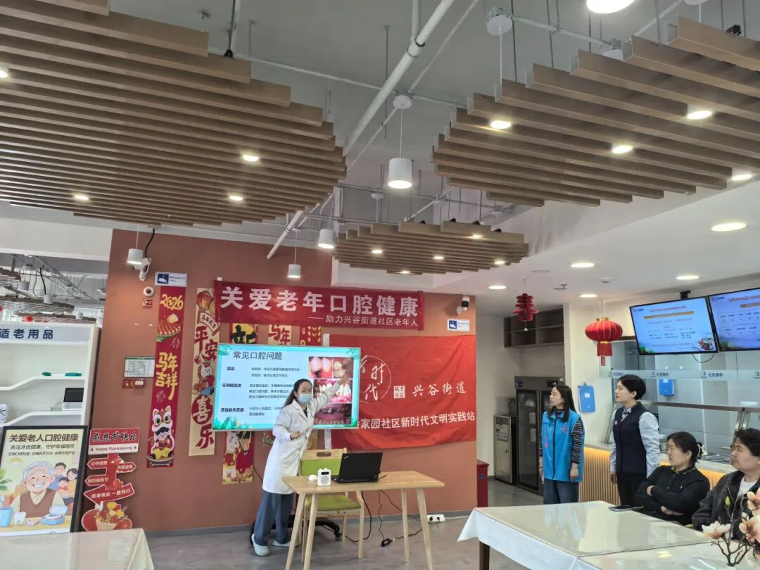 活动伊始,专业牙科医生通过生动的视频和直观的图片展示,深入浅出地讲解了老年人常见的口腔健康问题。针对牙齿松动、牙龈萎缩、牙根龋坏、口腔干燥以及假牙护理等内容,医生逐一进行了详细解读,并结合真实病例,分析了口腔健康与全身疾病,如心脑血管疾病、糖尿病等的密切关联。活动还设置了互动问答环节,医生们耐心解答老人关于“刷牙出血怎么办”“假牙多久更换一次”等日常困惑,老人们听得认真,不时点头交流,纷纷表示受益匪浅。