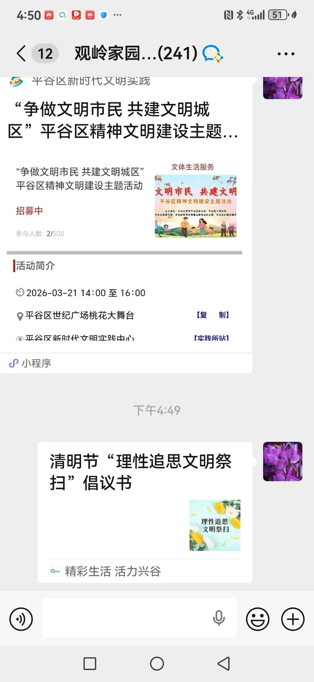 线上,社区充分利用微信群、网格群等平台,同步推送文明祭扫倡议与安全提示,用接地气、易传播的内容引导居民积极响应,让“绿色追思 文明祭扫”理念深入人心。