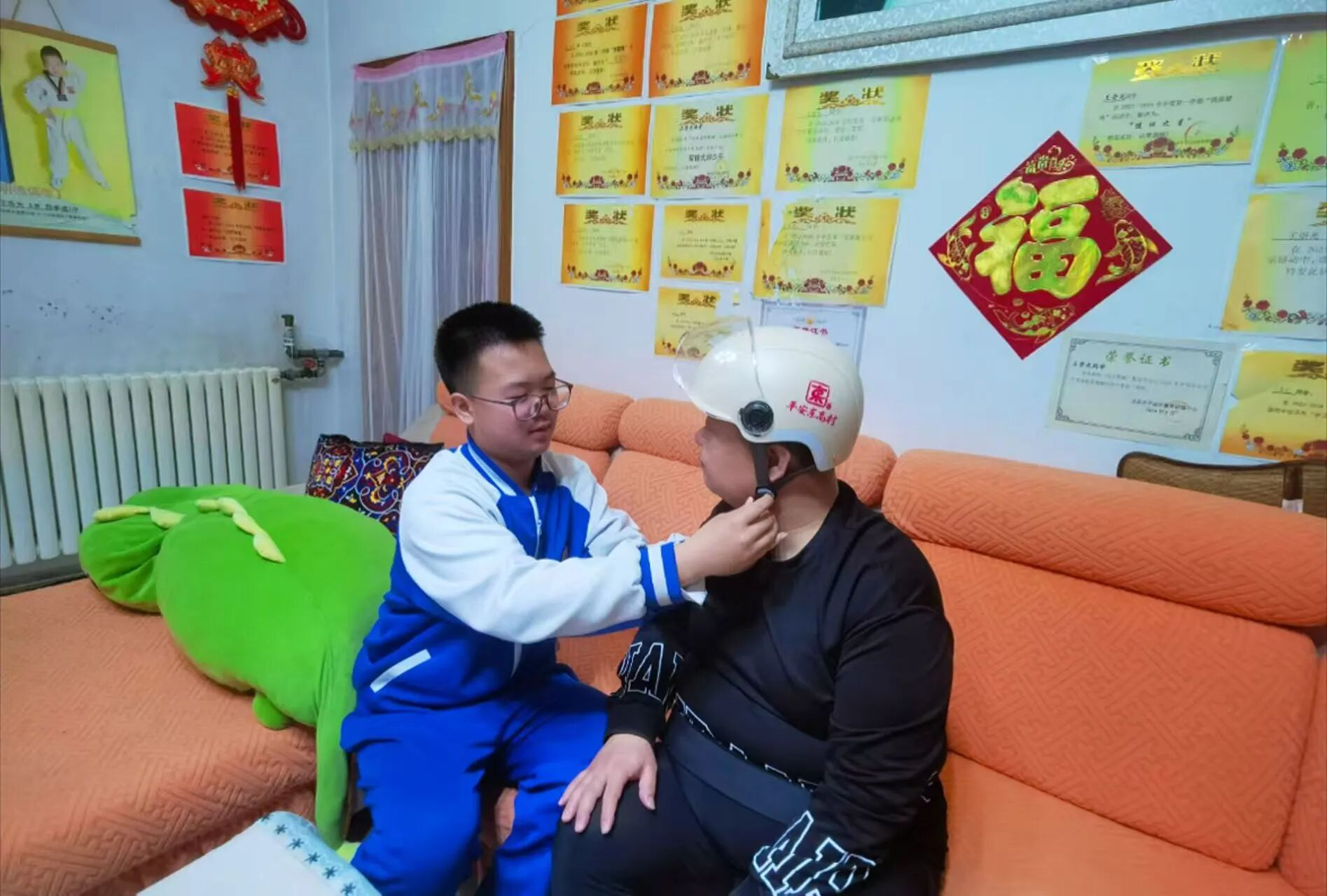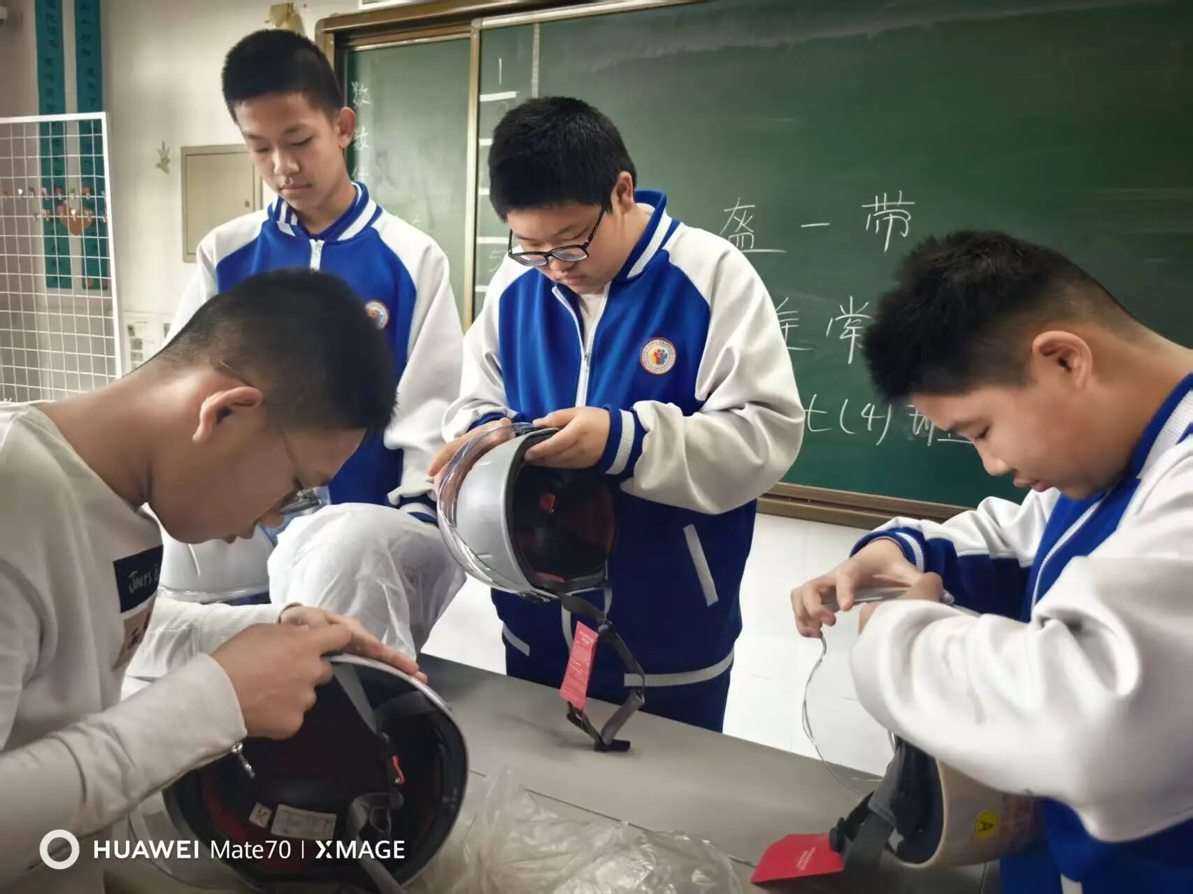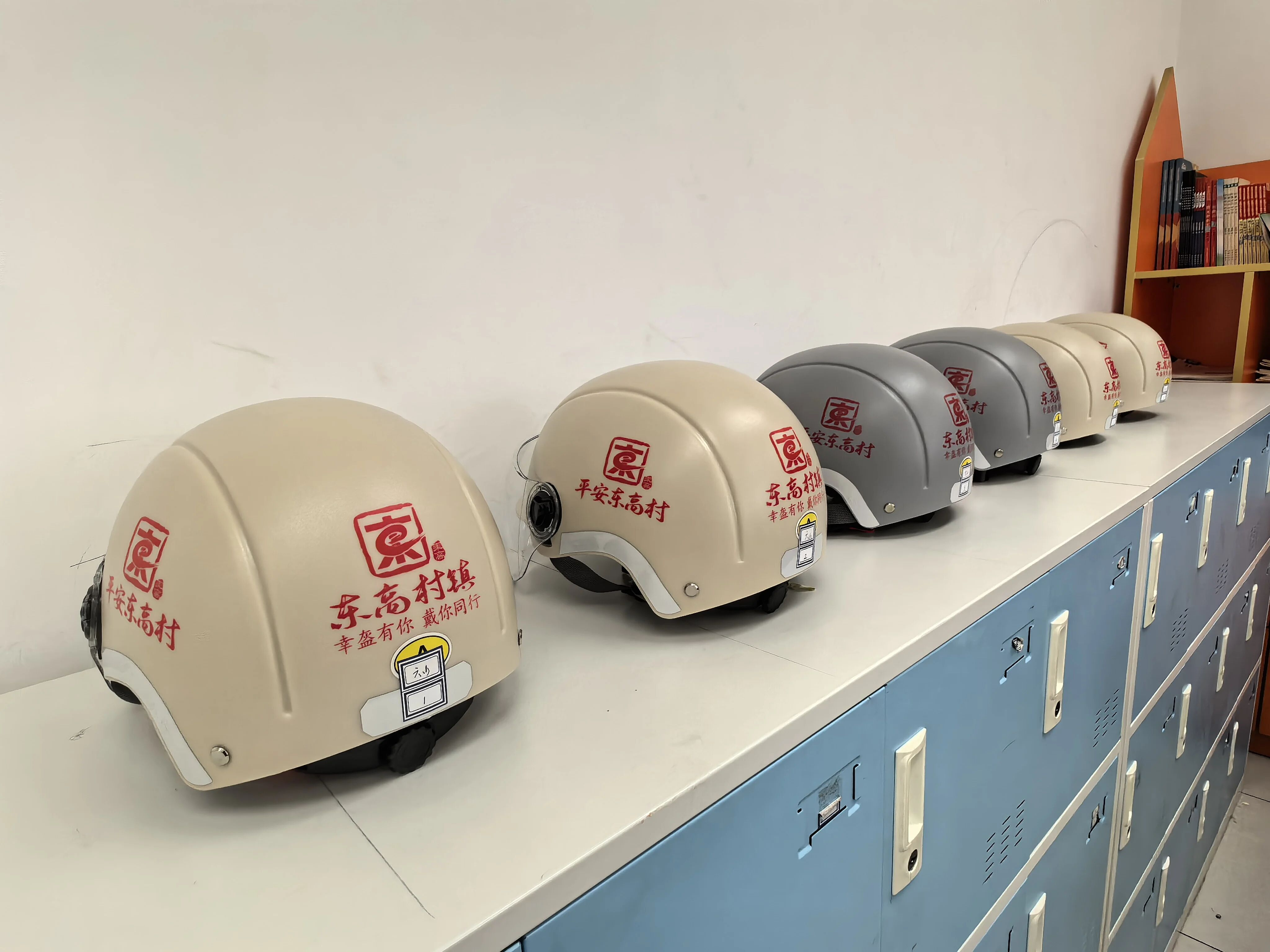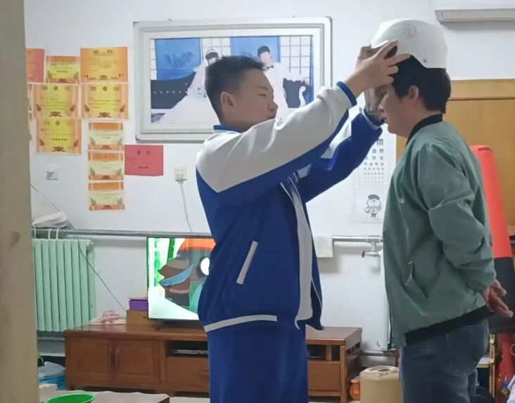 主题班队会上,印有东高村镇标识的爱心头盔整齐摆放。各班积极建立班级头盔轮流使用机制,同学们现场演示、实操练习,熟练掌握正确佩戴方法,让安全知识从“入耳入心”真正变为“动手践行”。