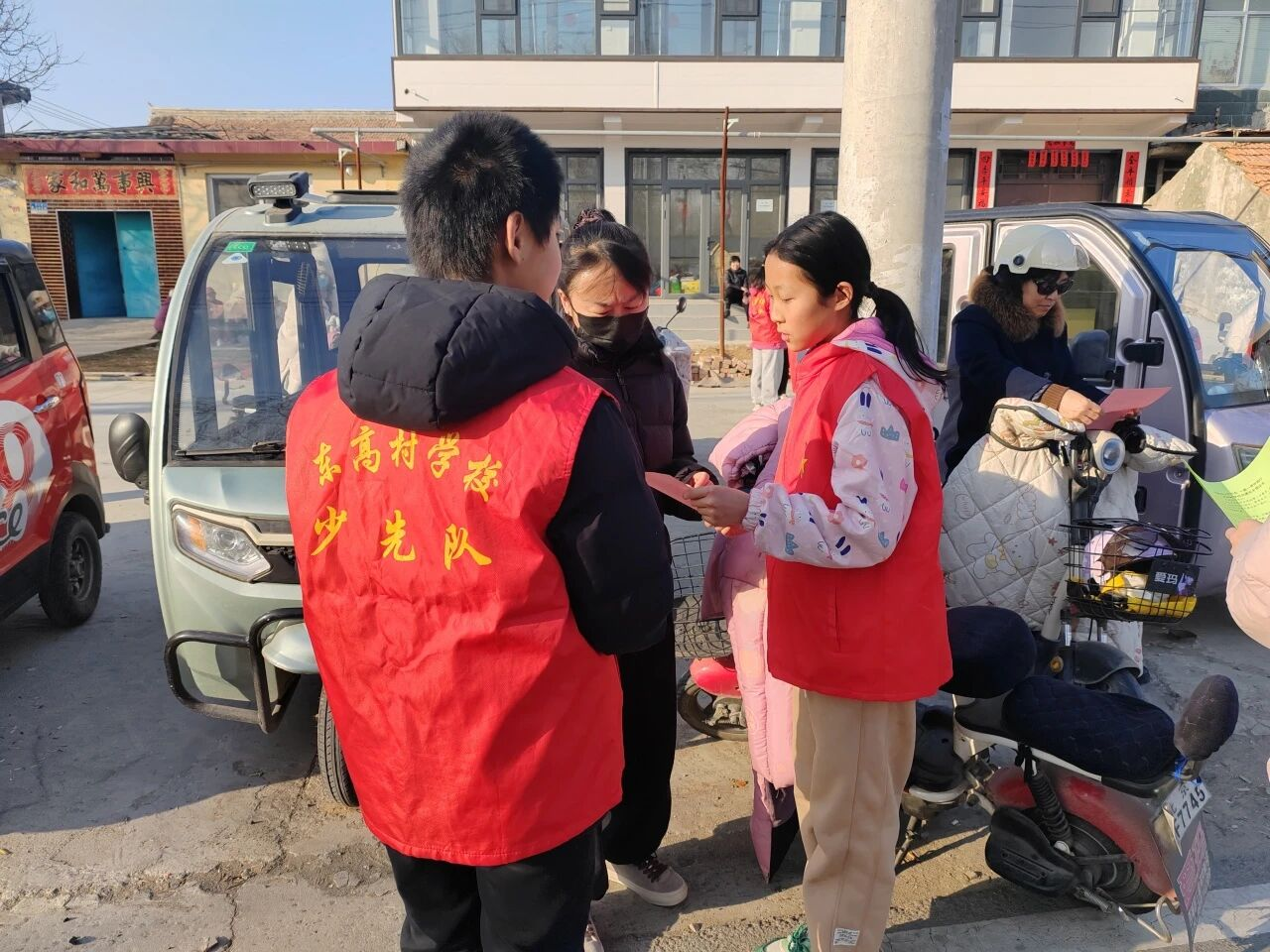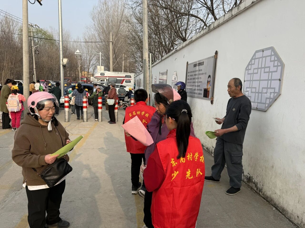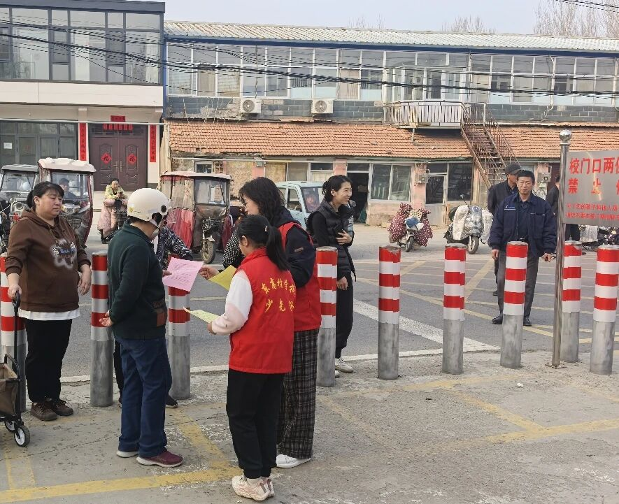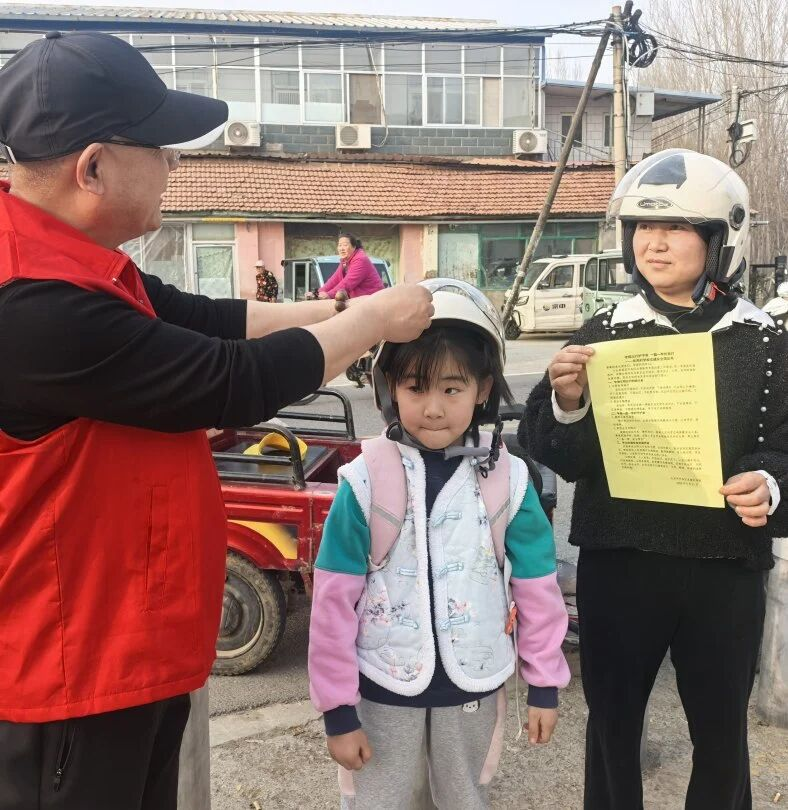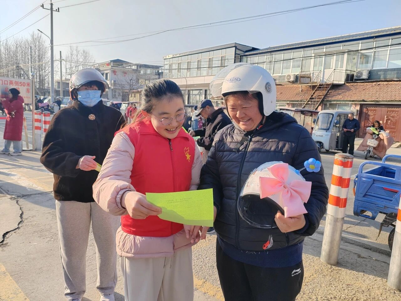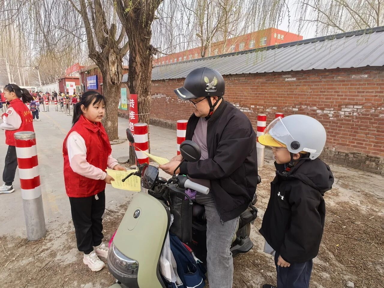 由学校领导带队,组织学生志愿者在校门口开展文明劝导与宣传引导活动。志愿者们耐心讲解头盔佩戴要点,暖心提醒过往家长与同学。一抹抹亮眼的“志愿红”化身流动宣传员与平安守护者,让安全意识在互动传递中深入人心。