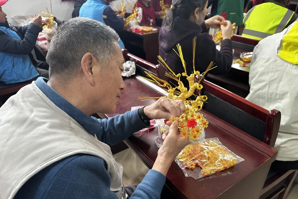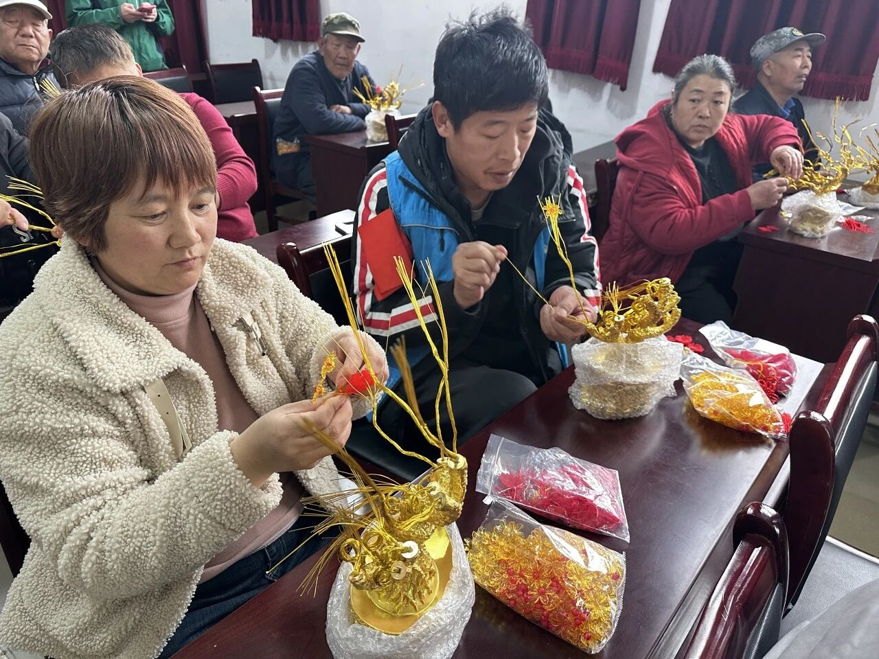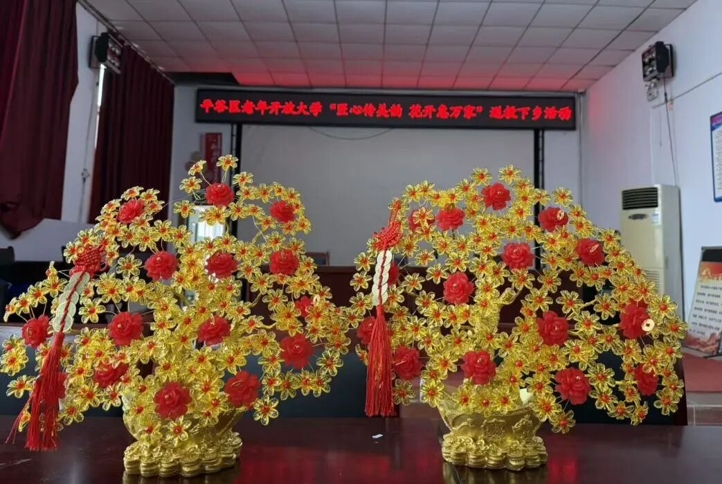 活动现场,授课老师以“花开富贵”为主题,通过现场示范、分步讲解的方式,耐心教授编织技巧。从编织到成型,在老师的指导下,村民们全神贯注、动手实践,邻里间相互交流探讨、互帮互助。一盆盆鲜艳逼真的作品逐渐成型,现场氛围温馨、热烈。此次活动,不仅传授手工技艺,更丰富村内老年人的精神文化生活,让“老有所学、老有所乐”真正落到实处,切实提升村民的获得感与幸福感。