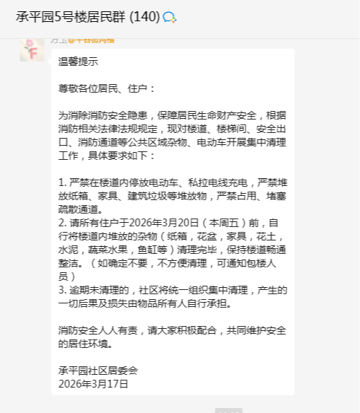 清理整治是起点,长效保持才是关键。承平园社区在完成集中清理后,持续加大日常巡查频次,严防问题反弹回潮。同时依托居民网格群、入户宣传等方式,普及安全知识与文明创建要求,引导居民自觉做到不堆物、不占道、不毁绿,共同维护整洁优美的公共环境。