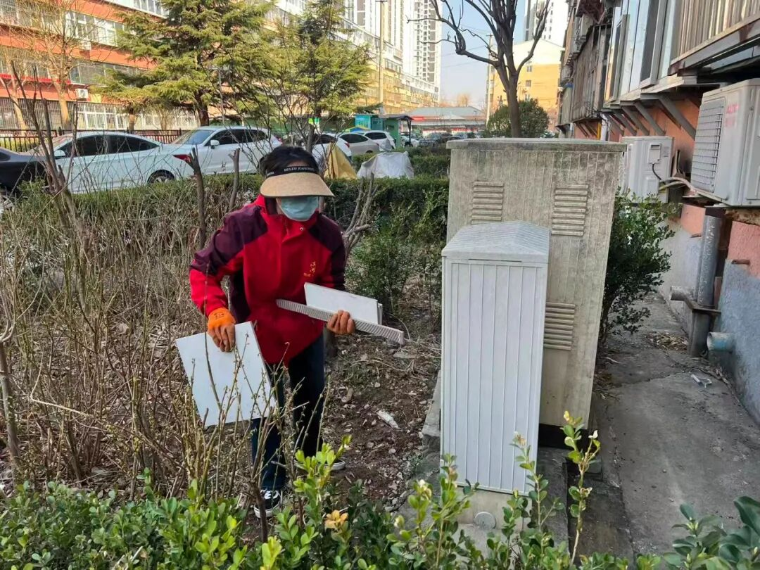 本着“以人为本、疏堵结合”的原则,承平园社区网格员主动上门与居民沟通协商。对主动配合清理的住户,网格员现场协助搬运、分类处置;对存在顾虑、理解不足或行动不便的居民,社区联合志愿者组建“突击队”,提供暖心帮扶、集中清理。针对楼道内长期堆积的顽固杂物、楼体周边乱堆乱放物品进行彻底清理整治,切实保障楼道畅通安全,恢复绿地整洁原貌。