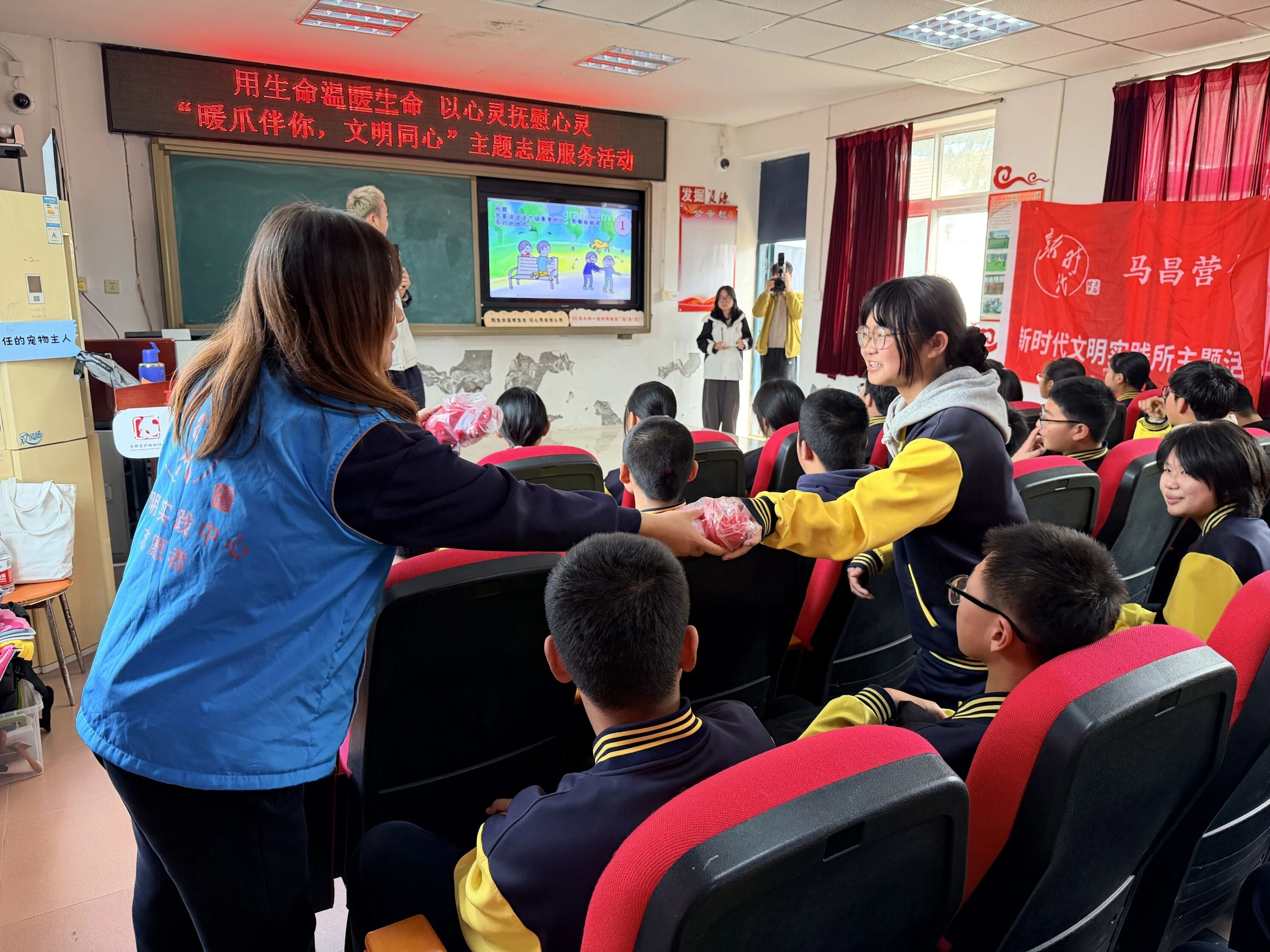 为深化新时代文明实践,将生命教育、心理关怀与文明养宠宣传有机融入校园,马昌营镇团委、新时代文明实践所携手首都爱护动物协会,在马昌营中学开展“暖爪伴你,文明同心”主题志愿服务活动。活动通过创新的“专业机构支持+志愿者执行+学校对接”模式,将文明养宠理念与青少年心理健康关怀深度融合,为全校师生带来了一场温暖而有深度的生命教育课。