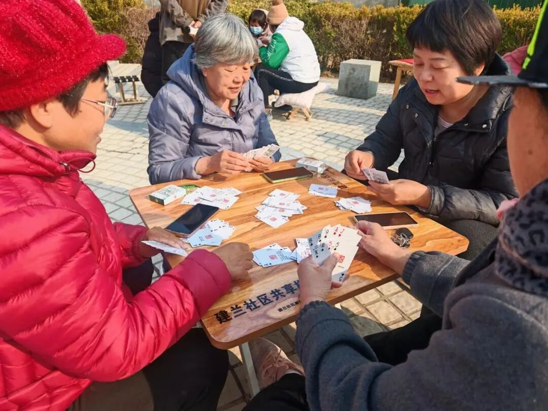 近日,建兰社区小公园内格外热闹,几张崭新的棋牌桌旁围坐着不少居民,或切磋牌技,或闲话家常,欢声笑语不断。这是社区为满足居民休闲需求、提升辖区环境品质而推出的又一项便民举措。