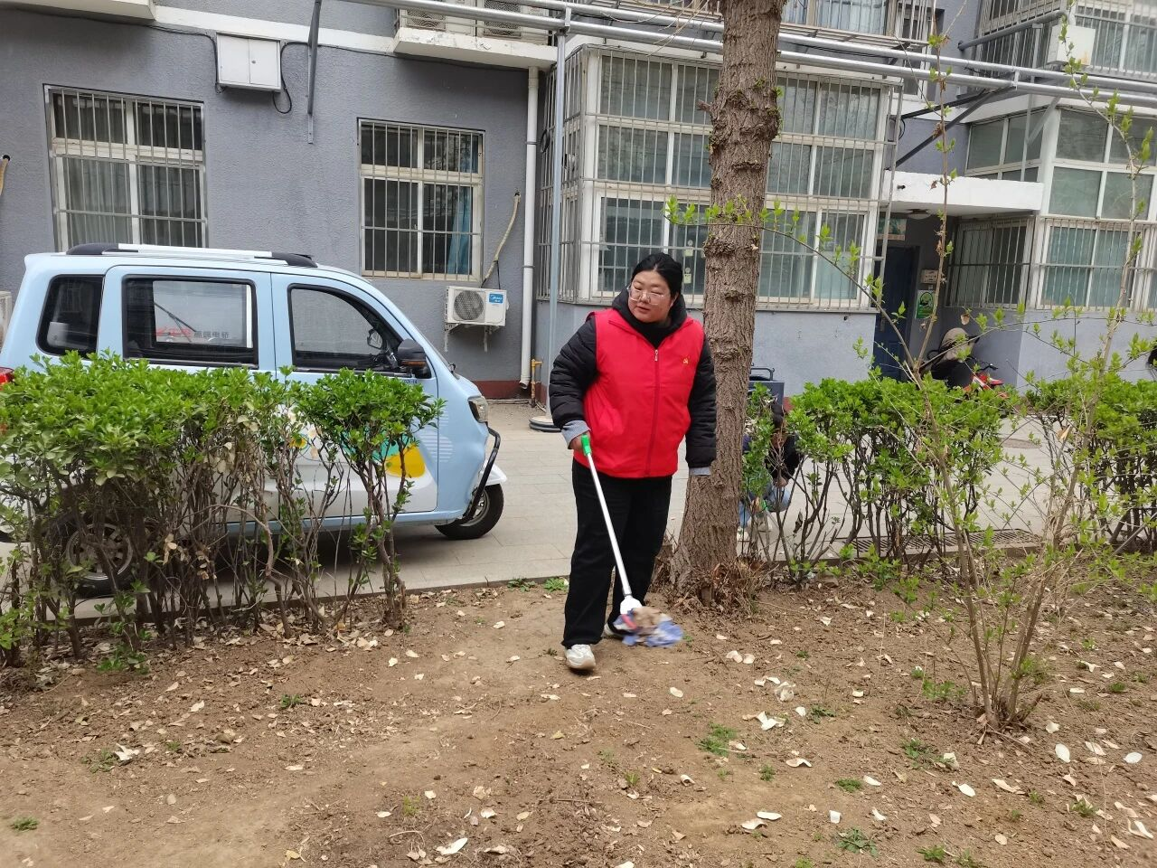 本次行动聚焦各小区的问题重点,分区域、分重点推进整治工作。在小区绿地整治方面,工作人员与志愿者携带垃圾袋、夹子等工具,深入各小区绿化带、花坛等区域,全面清理散落垃圾、枯枝落叶及隐藏的狗便等,累计清理各类绿地垃圾20余袋,彻底消除卫生死角,还原绿地整洁风貌。