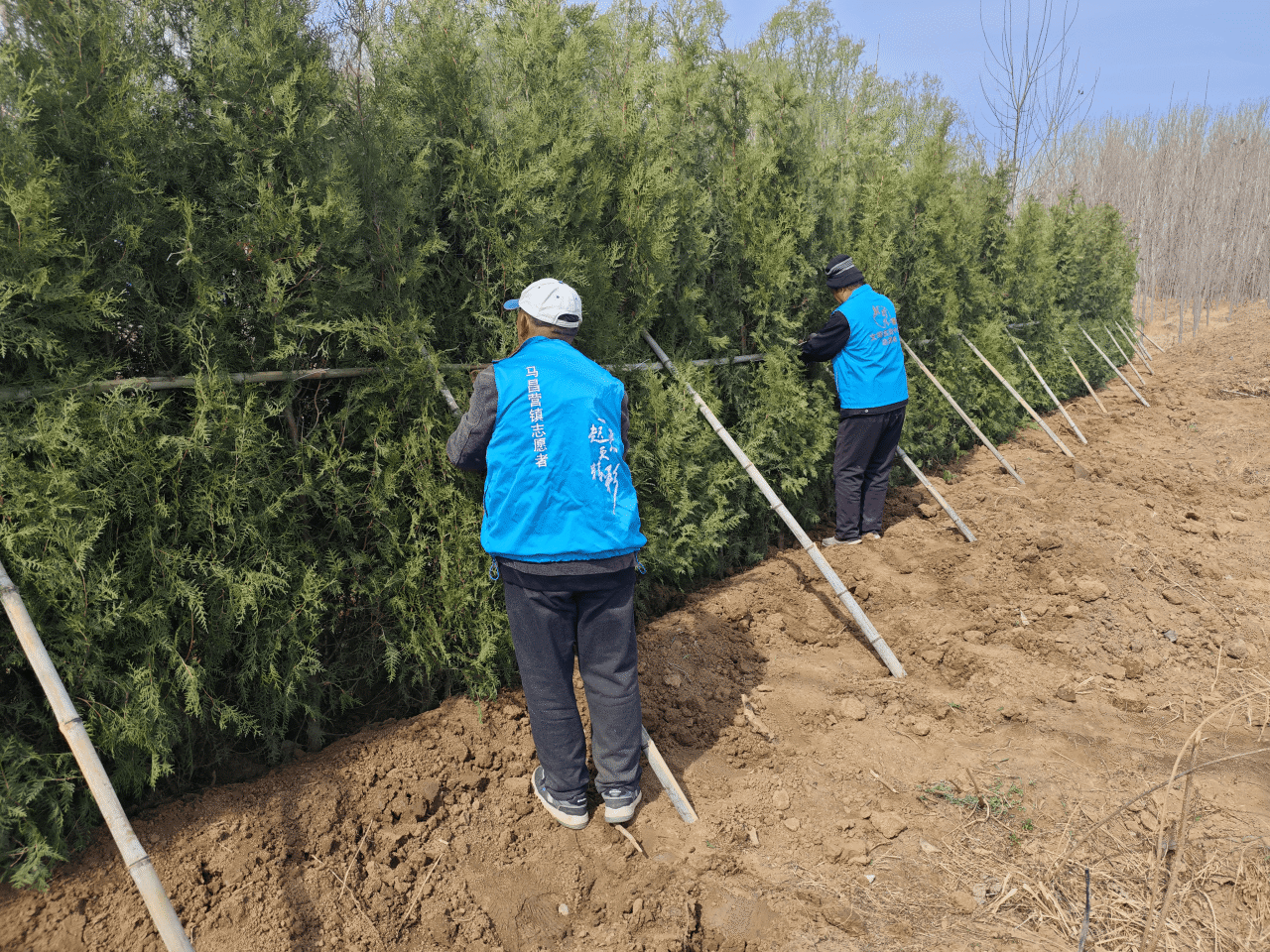 活动现场,热火朝天的劳作氛围感染着每一个人。志愿者们往来忙碌,身影穿梭在春日的田间,成为一道温暖又亮眼的风景线。村“两委”干部充分发挥带头作用,率先投入植树劳作,现场统筹分工、协调推进;党员、退伍老兵与志愿者们默契配合、分工协作,有的挥锹铲土挖坑,有的扶正树苗校准位置,有的培土压实固根,有的提水浇灌养护,每一个步骤都认真细致、一丝不苟,大家齐心协力,用双手种下一株株承载着生态希望的树苗。经过大家的辛勤付出,一排排新栽的树苗迎风挺立,稚嫩的枝叶在春光中舒展,为王官屯村增添了片片清新绿意,让乡村面貌焕然一新。