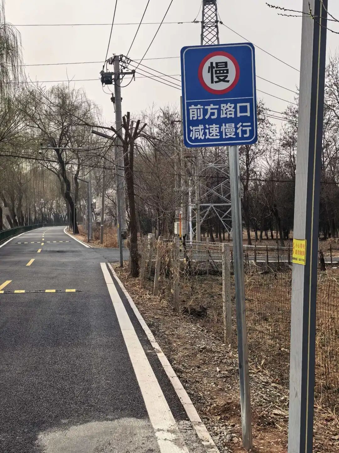 针对村民反映的村口交通安全隐患问题,立足实际、统筹部署,重点对周村巡河路、小学周边及北城子村村口开展交通设施升级完善。通过科学布设安全设施,在相关路段安装减速带10余条,设置慢行及村口提示标识牌3处,进一步规范车辆通行秩序,有效降低通行风险,为村民及学生出行增添安全保障。