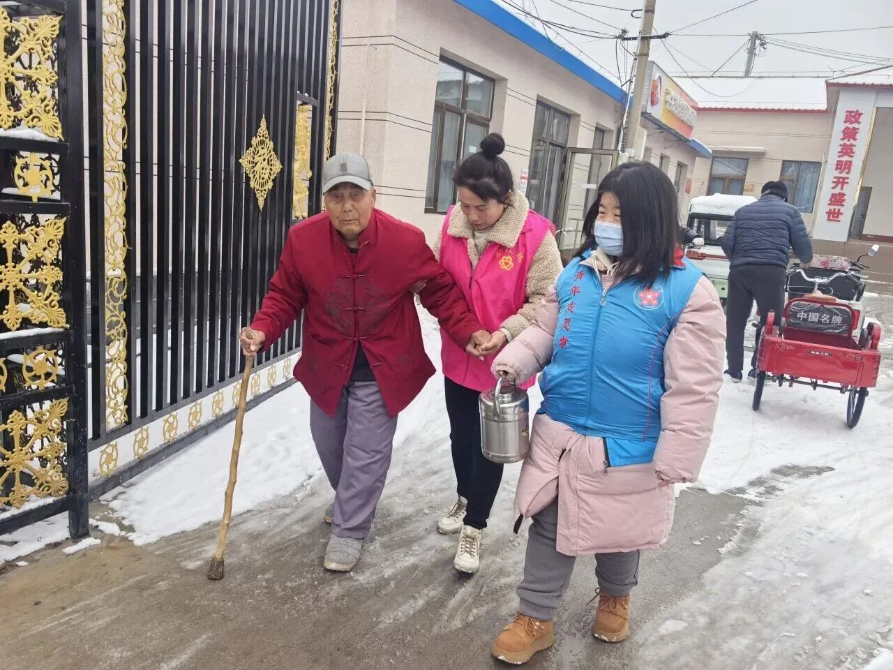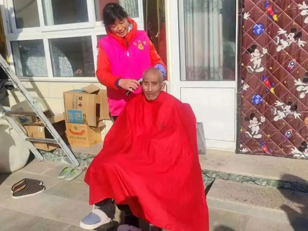 东高村镇组织为高龄老年人上门义剪志愿服务行动,为老年人送去关怀与照料。