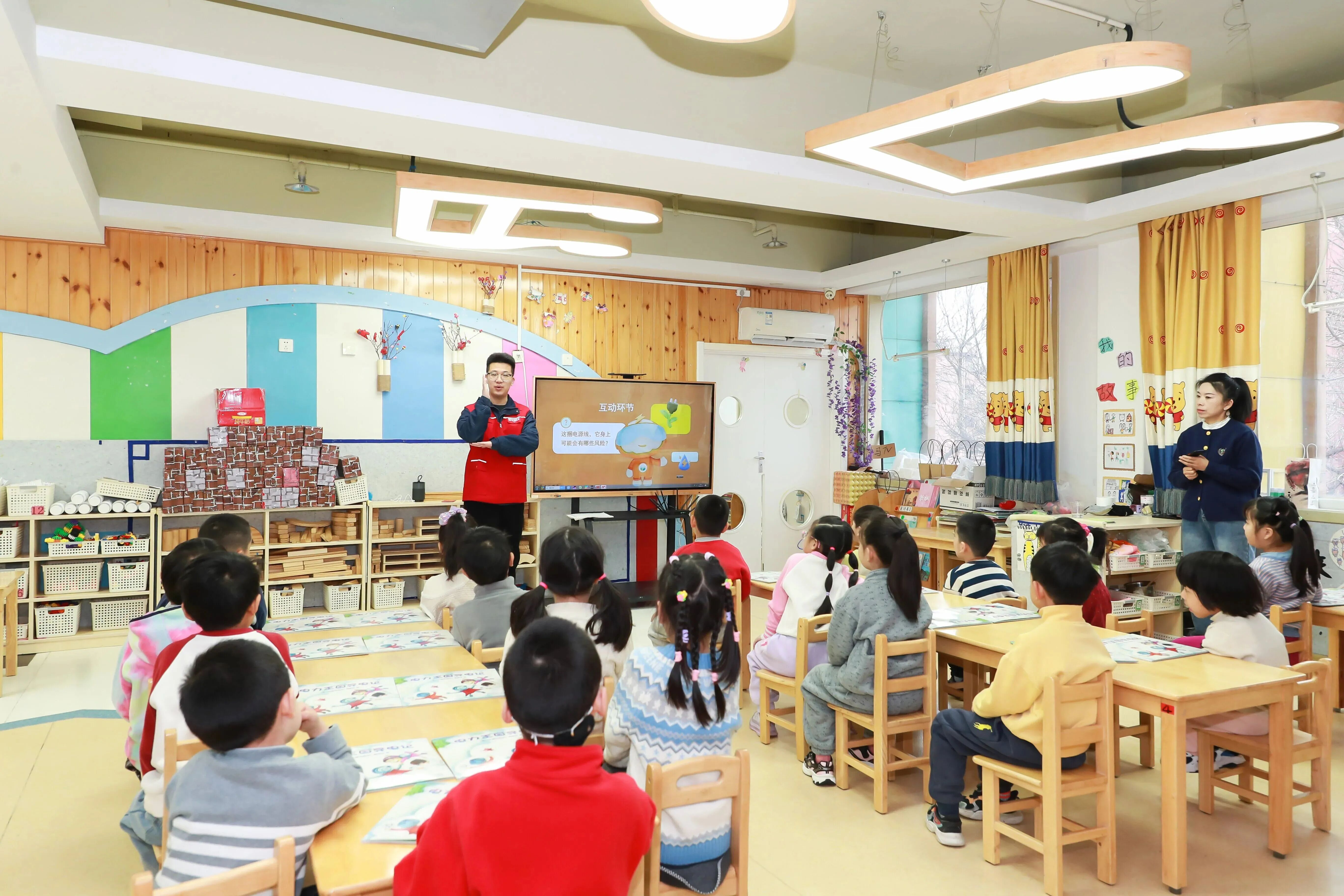 北京平谷供电公司坚持“守护祖国花朵,共建美好未来”理念,青年志愿者到平谷爱德幼儿园开展“传承雷锋精神 电亮童心未来”电力爱心教室公益活动,为幼儿园义务检查用电设备,保障孩子们用电安全。