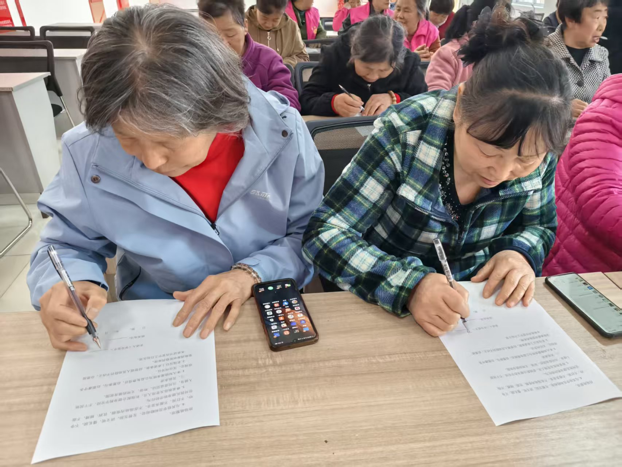 仪式第二项,现场宣读健身班日常管理制度,对活动时间、场地使用规范、健身纪律、安全注意事项等内容进行详细讲解,明确各项管理要求,确保健身班规范有序、长效运转,为村民营造安全、舒心的健身环境。随后,报名村民依次签订健身承诺书,郑重承诺将严格遵守规章制度、爱护公共设施、文明安全健身,积极配合班级管理,共同维护良好秩序。