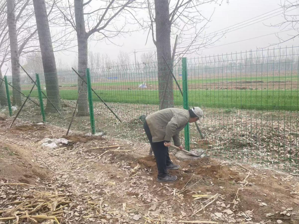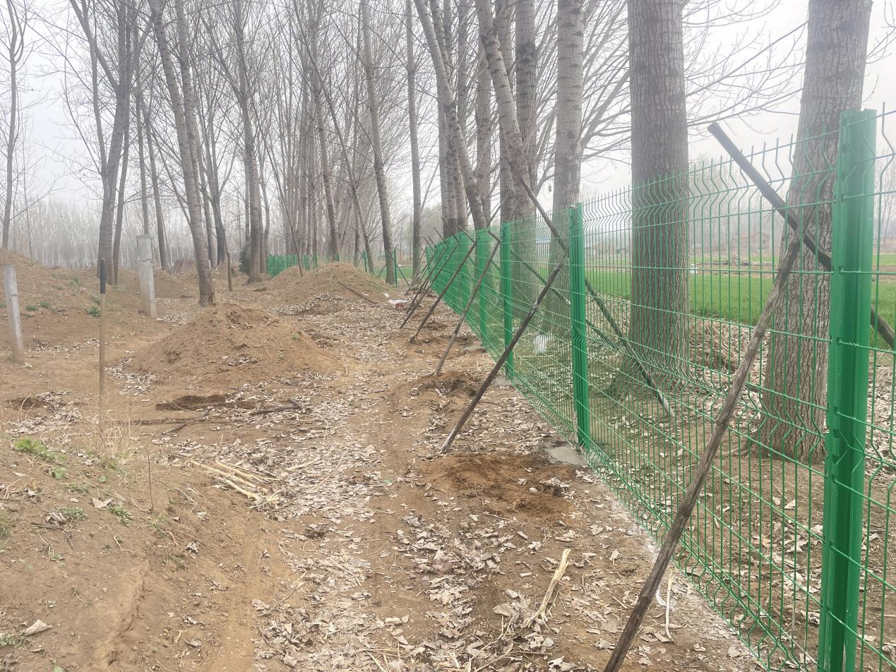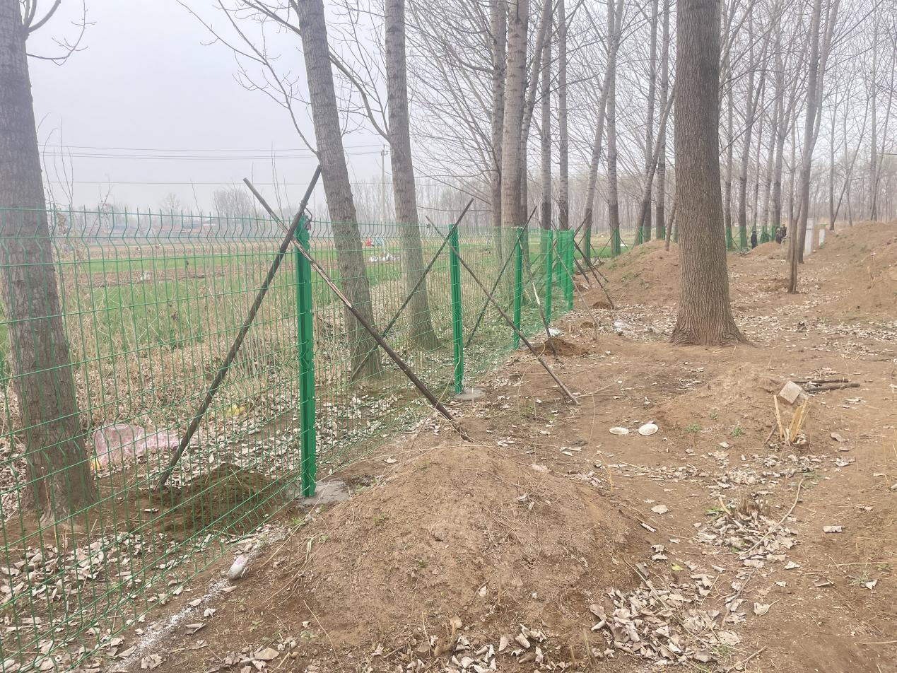 北张岱村结合村内集中埋葬点地形实际,严格按照“统一围挡、封闭管理、规范出入口”标准推进整治工程:采用绿色环保围栏,沿埋葬点边界搭建连续封闭屏障,有效分隔丧葬区域与周边农田、林地;科学设置唯一通行出入口,安排专人值守引导,从源头遏制不文明行为。截至目前,围挡整治工程已全面完工。