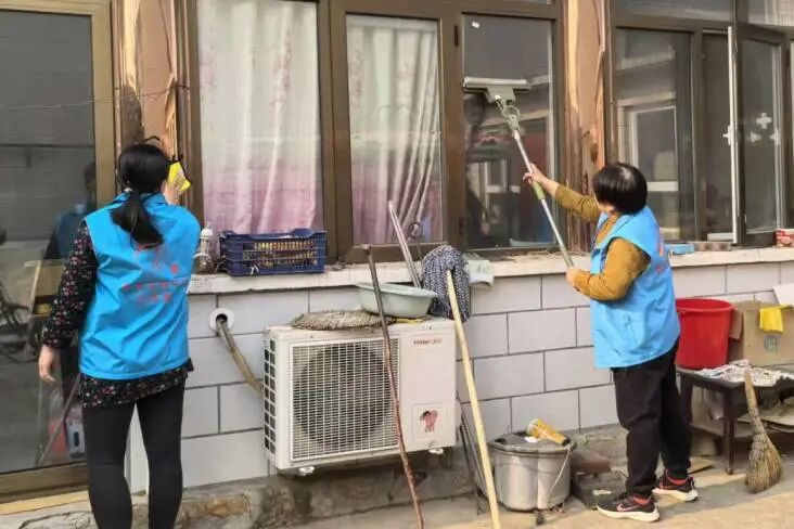 活动当天,志愿者们身着蓝色马甲,带着抹布、扫帚等清洁工具,分组来到村内独居老人家中。大家分工协作,有的清扫庭院落叶和杂物,有的擦拭门窗玻璃和家具,有的整理院内堆放的杂物。经过一番忙碌,老人们的庭院变得干净整洁,屋里屋外焕然一新。