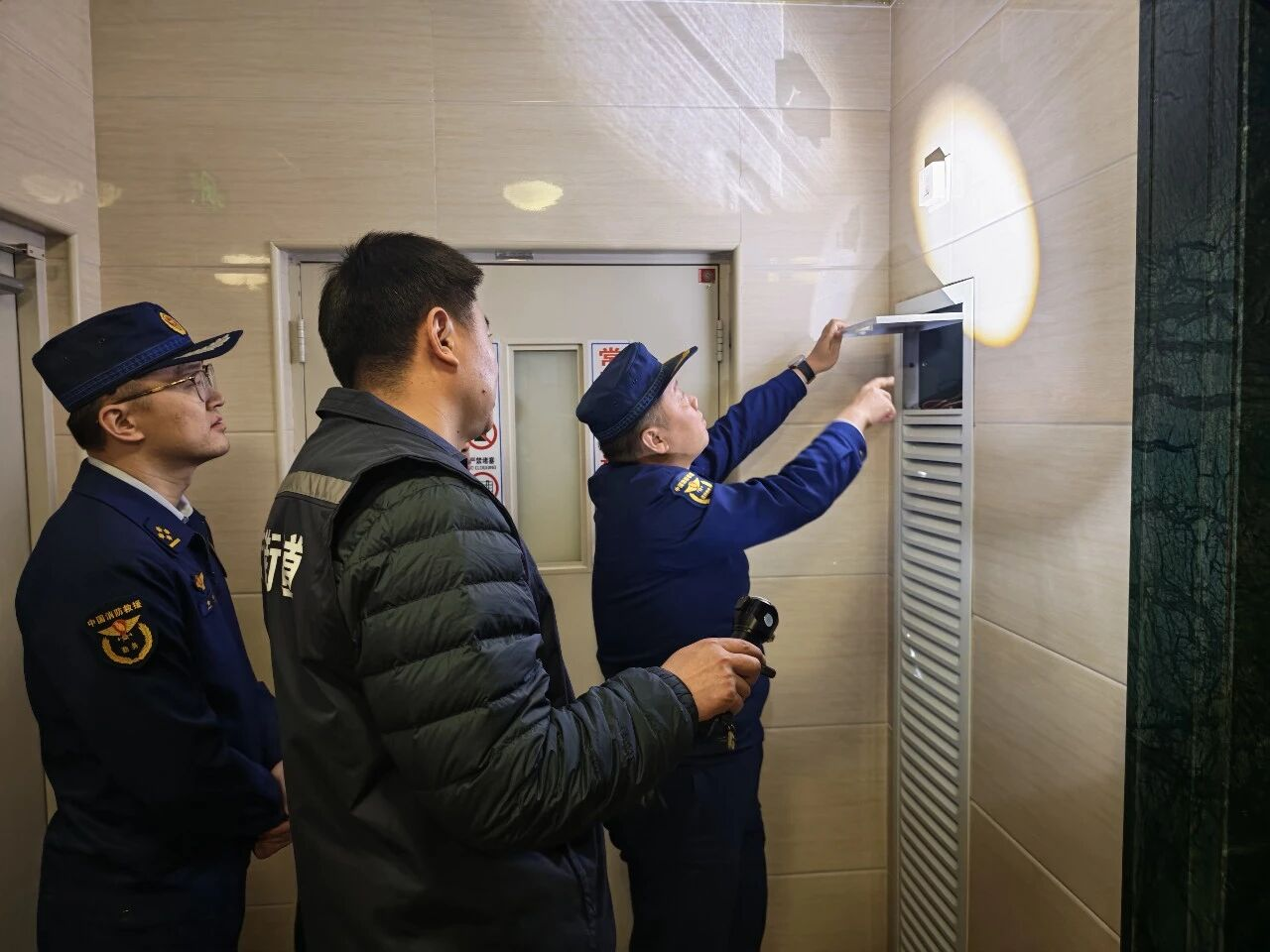 在商超区域,检查组重点核查消防器材完好有效情况、疏散通道和安全出口畅通与否,严防堵塞、占用消防通道等违规行为;在高层小区中控室,仔细查看值班值守制度落实、消防控制设备运行状态,要求值班人员坚守岗位、熟练操作,确保突发情况及时处置;针对电动车集中停放棚,严查违规充电、私拉乱接电线、车辆乱停乱放等突出问题,从源头防范电气火灾隐患;对居民楼道逐一排查,重点清理杂物堆积、违规堆放易燃物品等现象,现场实地测试消防设施运行及通道通行情况,全力排查每一处潜在安全风险。