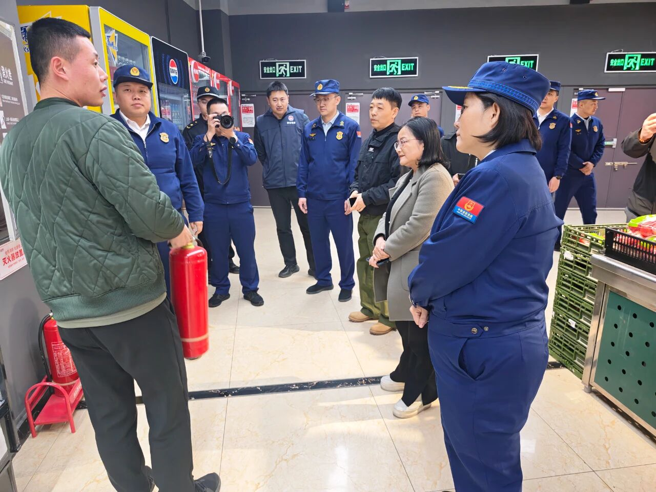 此次夜查聚焦人员密集、隐患易发高发重点区域,检查组先后深入辖区商超、高层小区中控室、电动车集中停放棚及居民楼道,开展全方位、细致化排查。