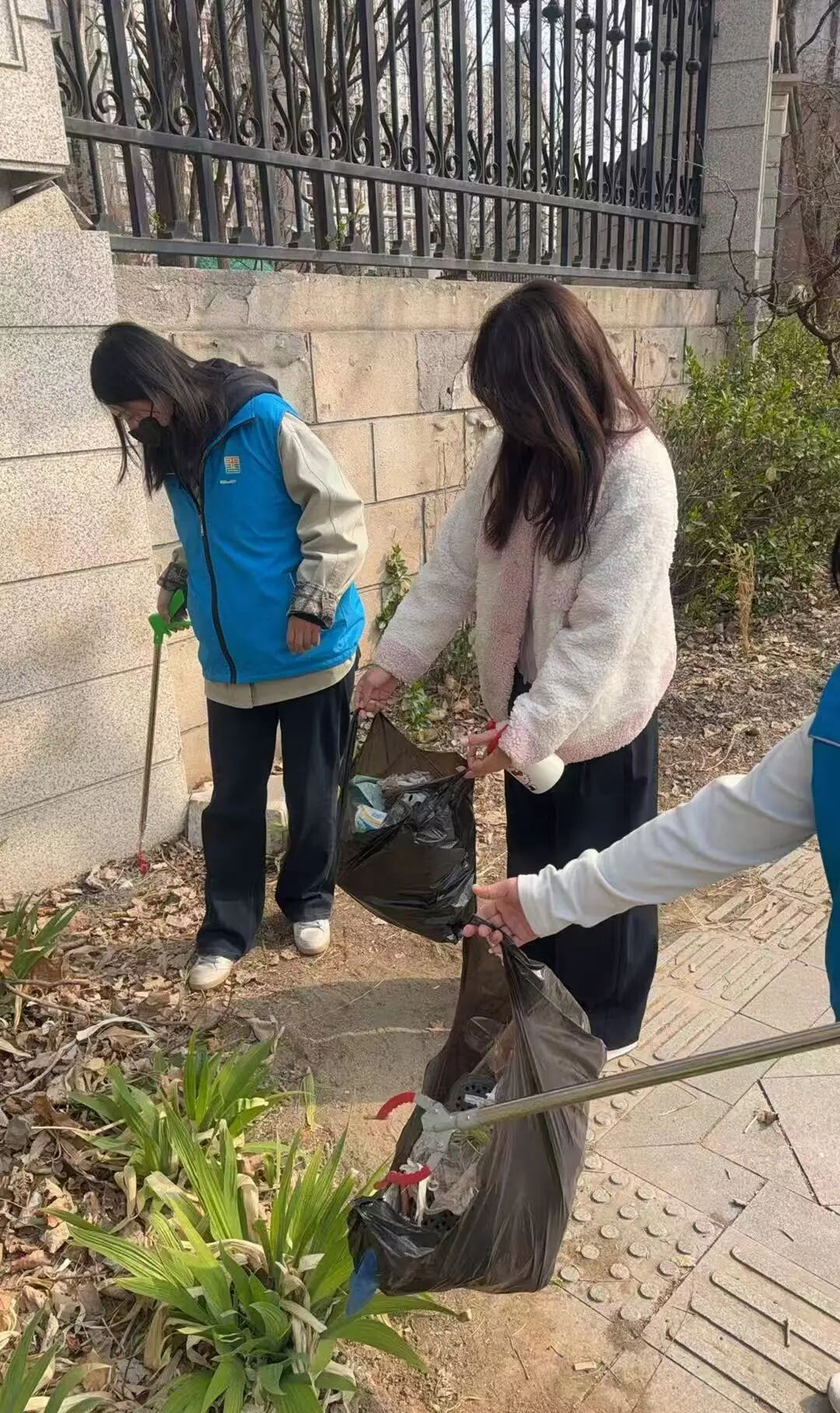 整治过程中,园林绿化、环卫公司、绿都集团三个部门密切配合、协同发力,形成强大工作合力。环卫公司聚焦道路中间路面及行人步道,全面开展清扫作业,细致清理路面杂物、积尘及零散垃圾,对步道缝隙中的顽固杂物逐一清理;园林绿化部门重点针对步道两侧绿植区域,安排专人捡拾绿植下方白色垃圾、塑料袋、纸屑等杂物,全面清理绿化盲区;绿都集团集中力量铲除道路两侧杂草,清理落叶枯枝,彻底清除边角卫生死角。与此同时,社区积极组织党员、团员、志愿者投身整治一线,共同参与垃圾清理工作,进一步提升整治效率与覆盖面。