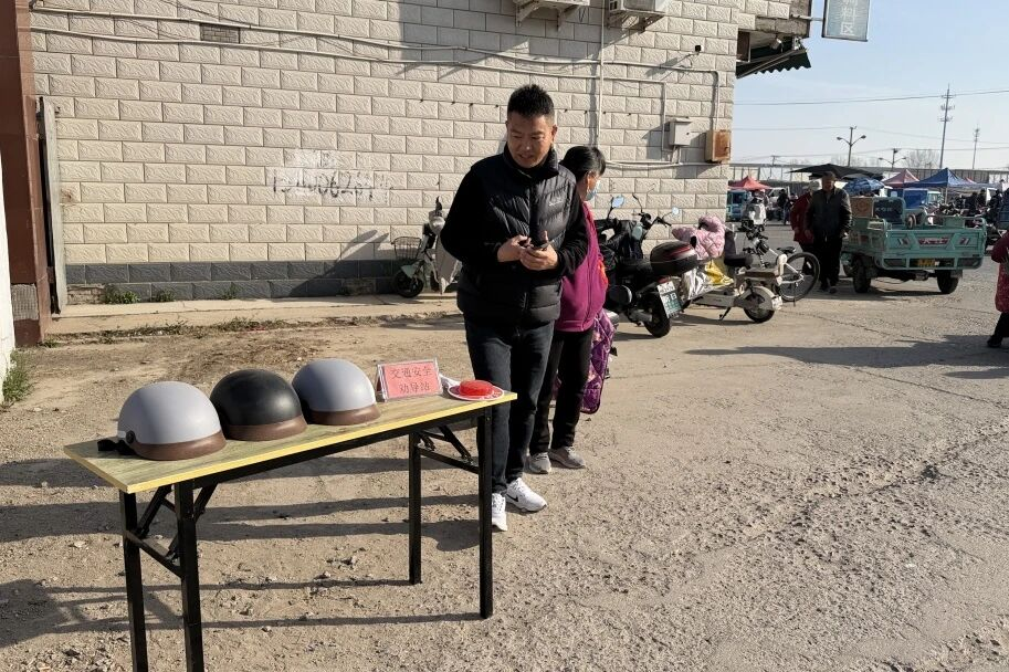 针对清明节期间群众祭扫、出游、返乡叠加,人流、车流剧增的特点,在我镇祭扫高峰路段、重点路口,车流量大的点位设置警示标识、共享头盔、配备劝导员进行交通疏导,并对一盔一带进行积极宣传,有效防范交通事故。