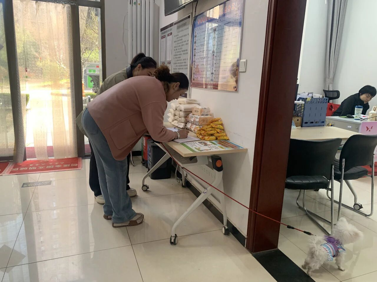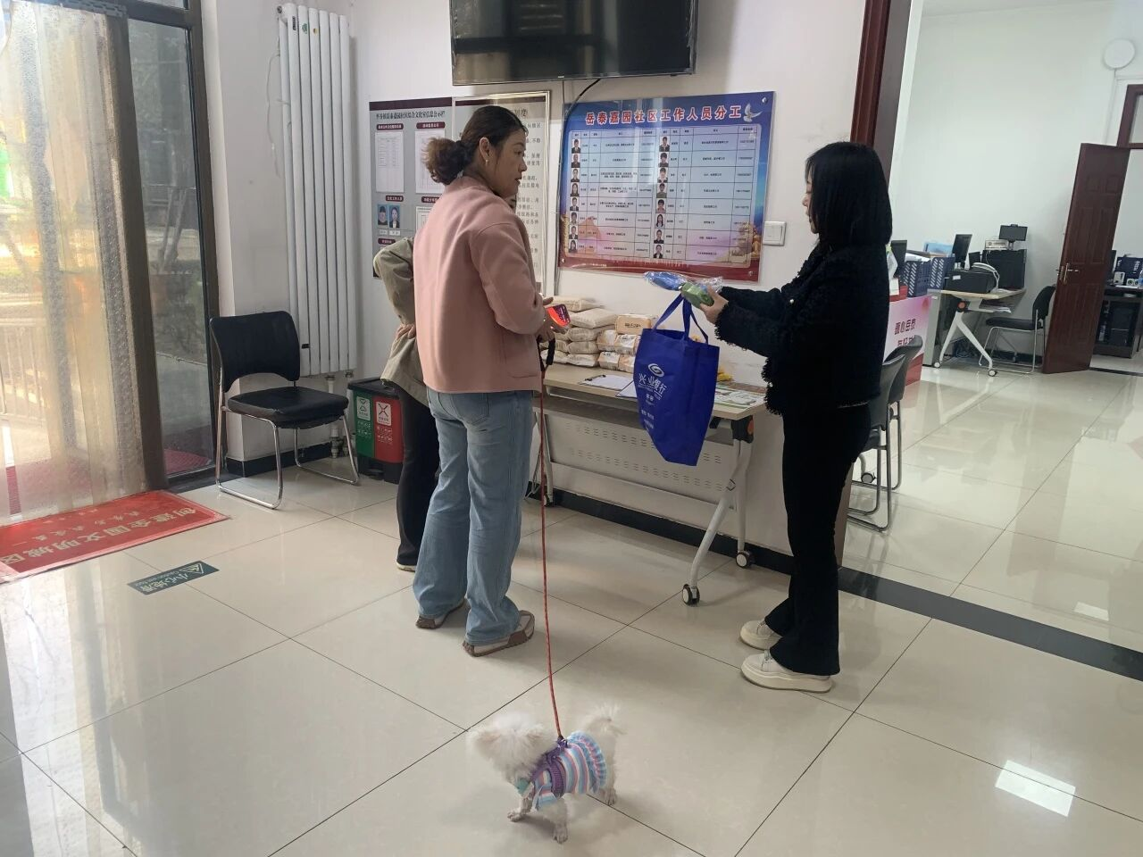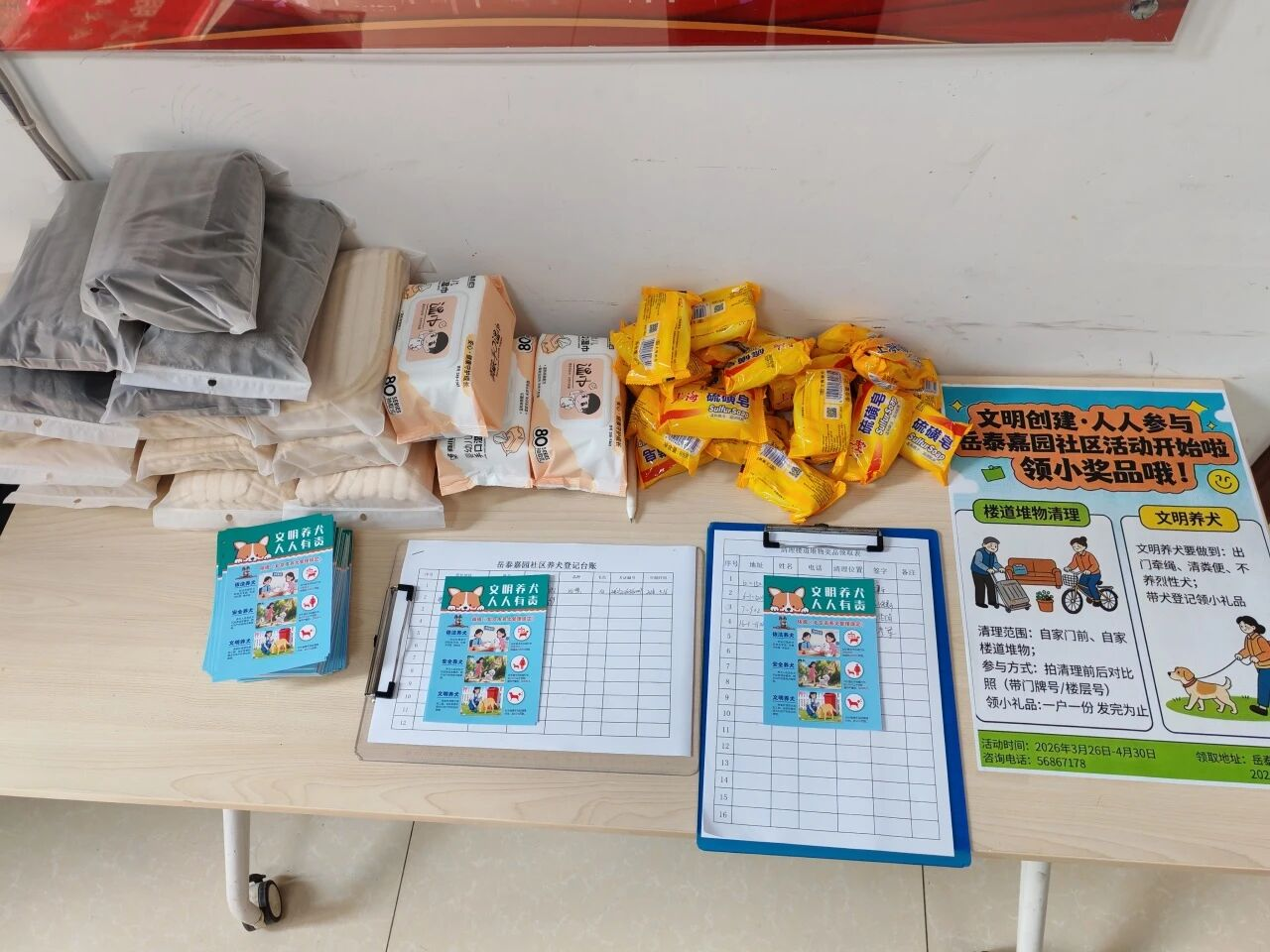 此活动一经推出,受到了大家的热烈响应,已经有很多居民拿着楼道堆物清理的前后照片或带着狗狗来到居委会登记兑换礼品。同时还可以让狗狗体验在“宠物公厕”解决如厕问题。包楼人员记录并完善台账,使楼道堆物和文明养犬工作更加有效的进行中,助力创城工作的有序开展。