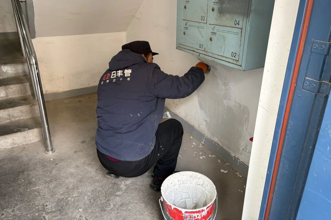 前期,社区工作人员深入各小区楼栋,逐单元、逐楼层开展拉网式排查,对各类墙面问题,建立详细问题台账,明确整治重点和整改时限,做到情况清、底数明、责任实。针对破损墙面,组织施工人员进行清理、找平、修补、粉刷,让老旧楼道重新干净整洁。