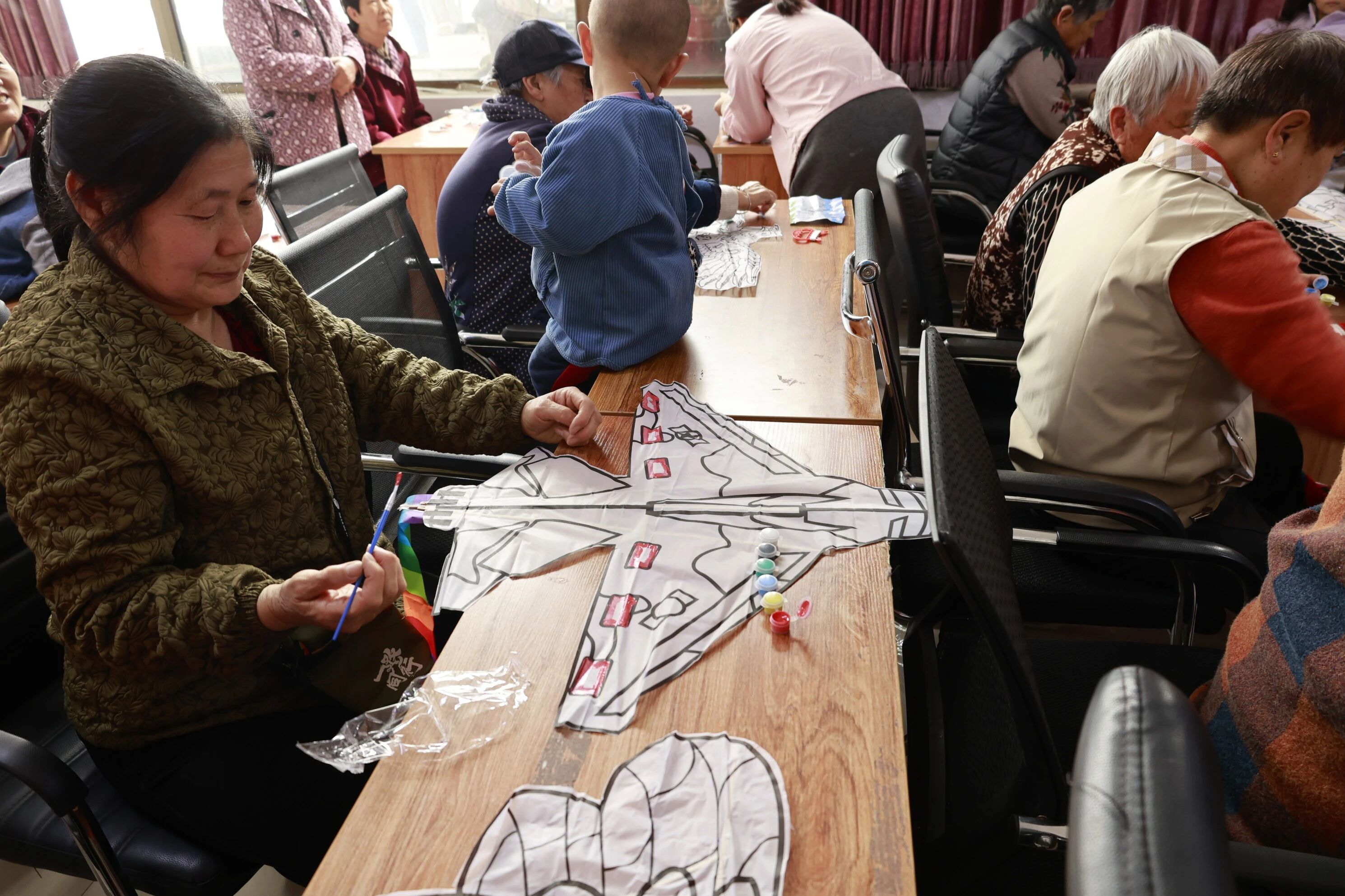 在手绘纸鸢环节,工作人员统一发放空白纸鸢坯、颜料、画笔等制作材料,并现场示范绘画技巧与简易组装方法。群众兴致高涨,纷纷拿起画笔自由发挥创意,精心绘制专属清明纸鸢,在沉浸式手工创作中感受传统手工艺的乐趣,体会民俗文化的独特魅力。