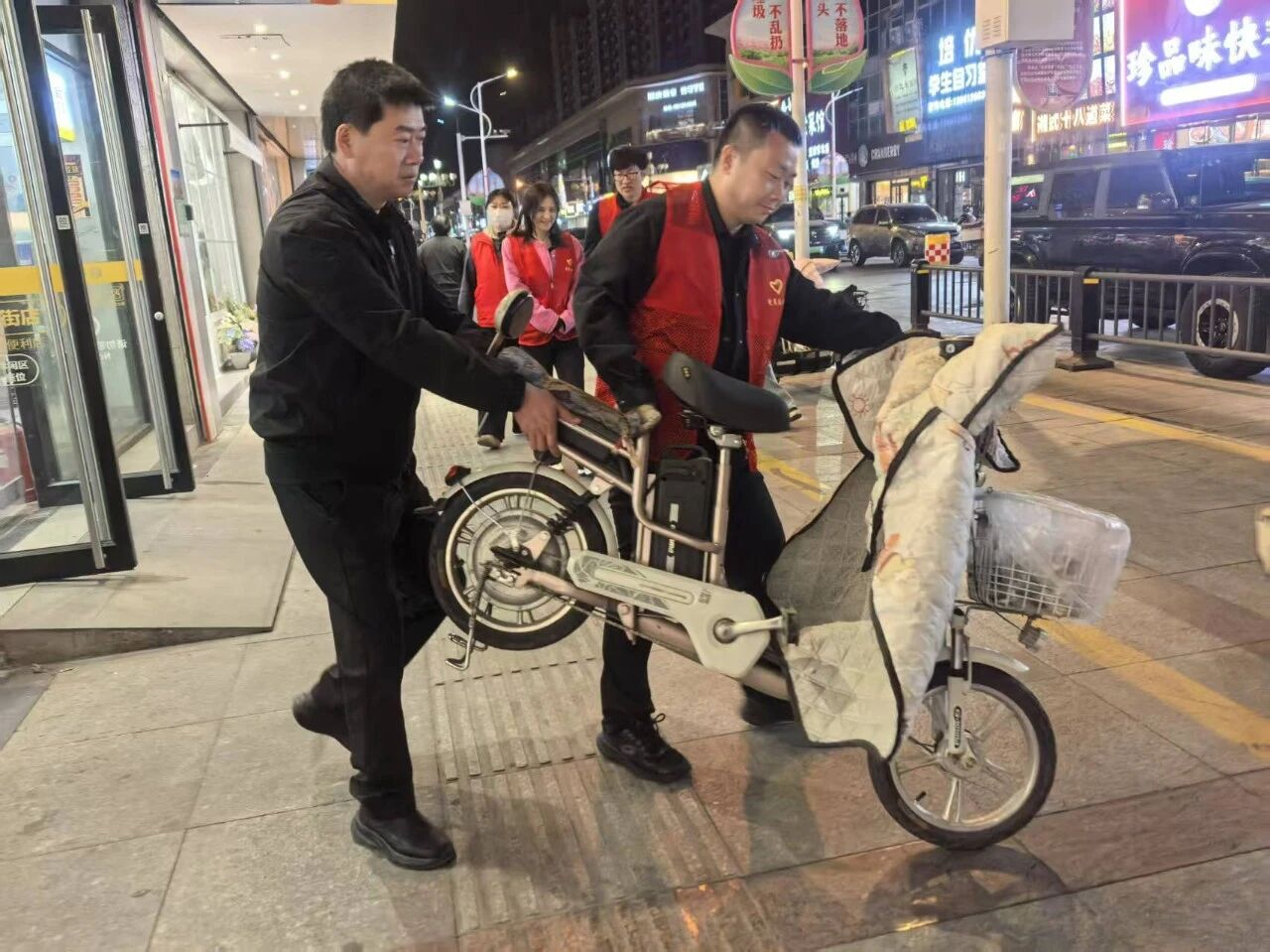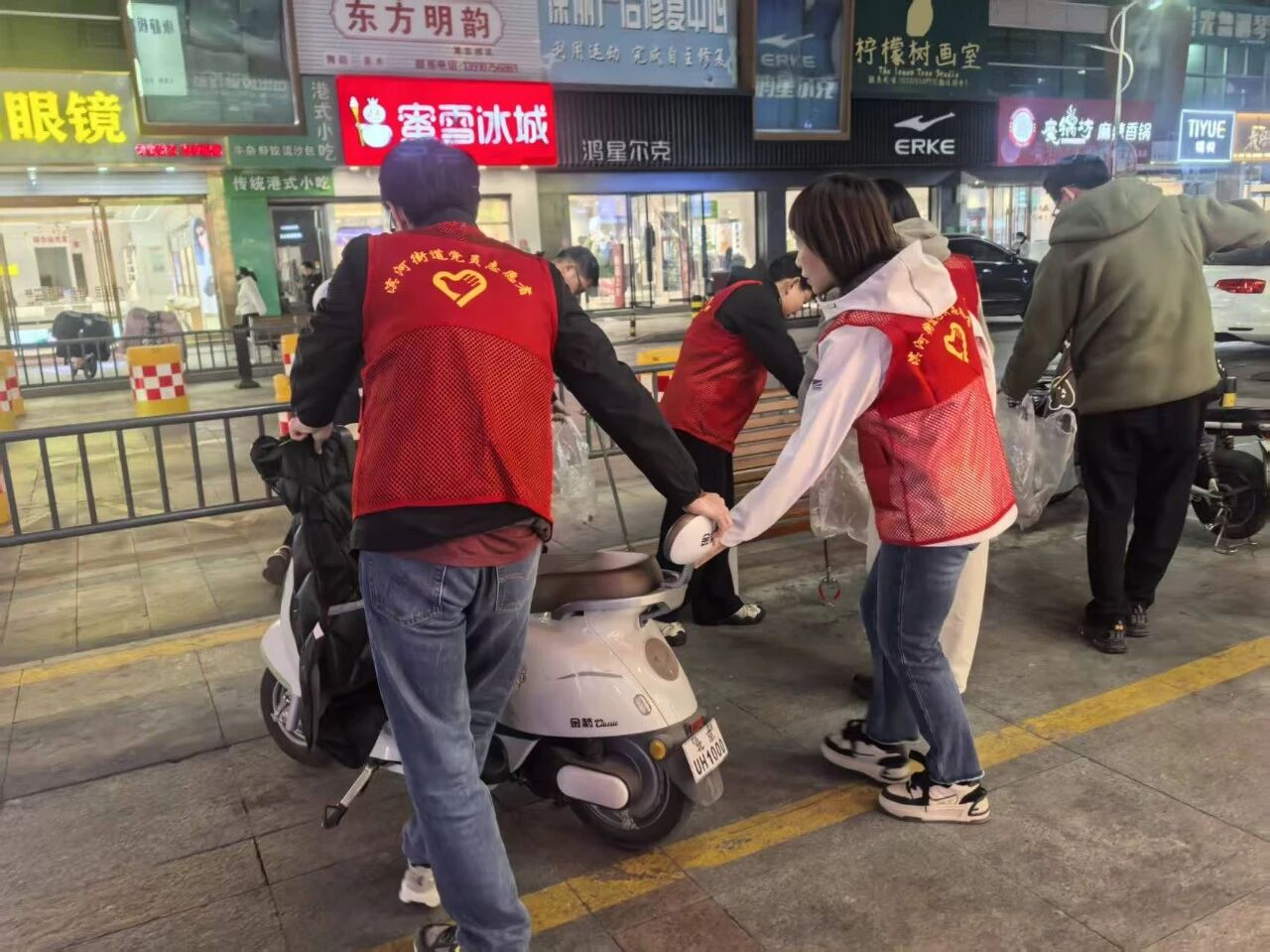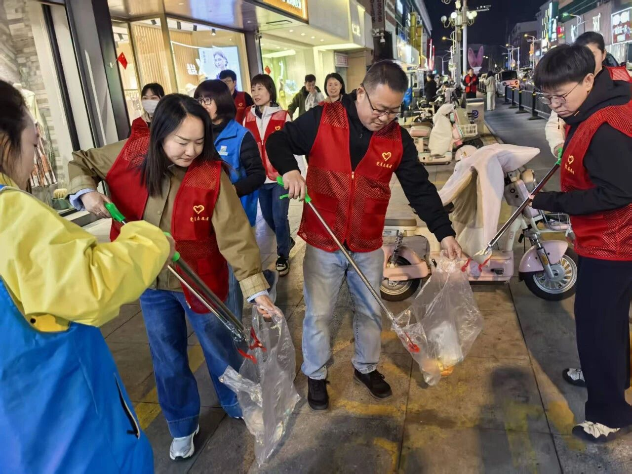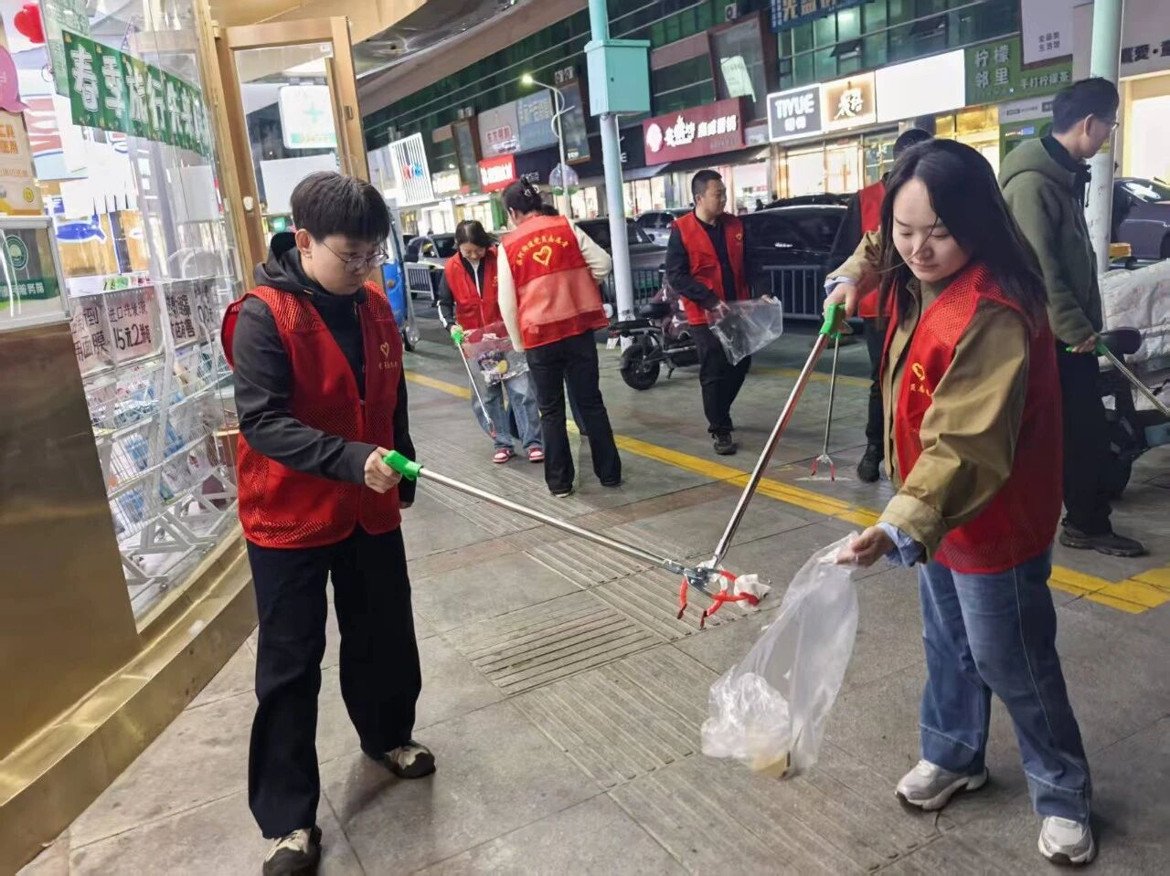 考察结束,学员们积极化身商圈志愿者,亲身参与社区治理实践活动。在步行街区,大家手持工具认真清理路面垃圾、规范摆放非机动车停放秩序,向周边商户及过往群众发放文明宣传资料,耐心宣讲文明城区创建、社区共治共享相关理念,以实际行动践行青年干部的责任担当,助力社区人居环境提质与文明氛围营造。