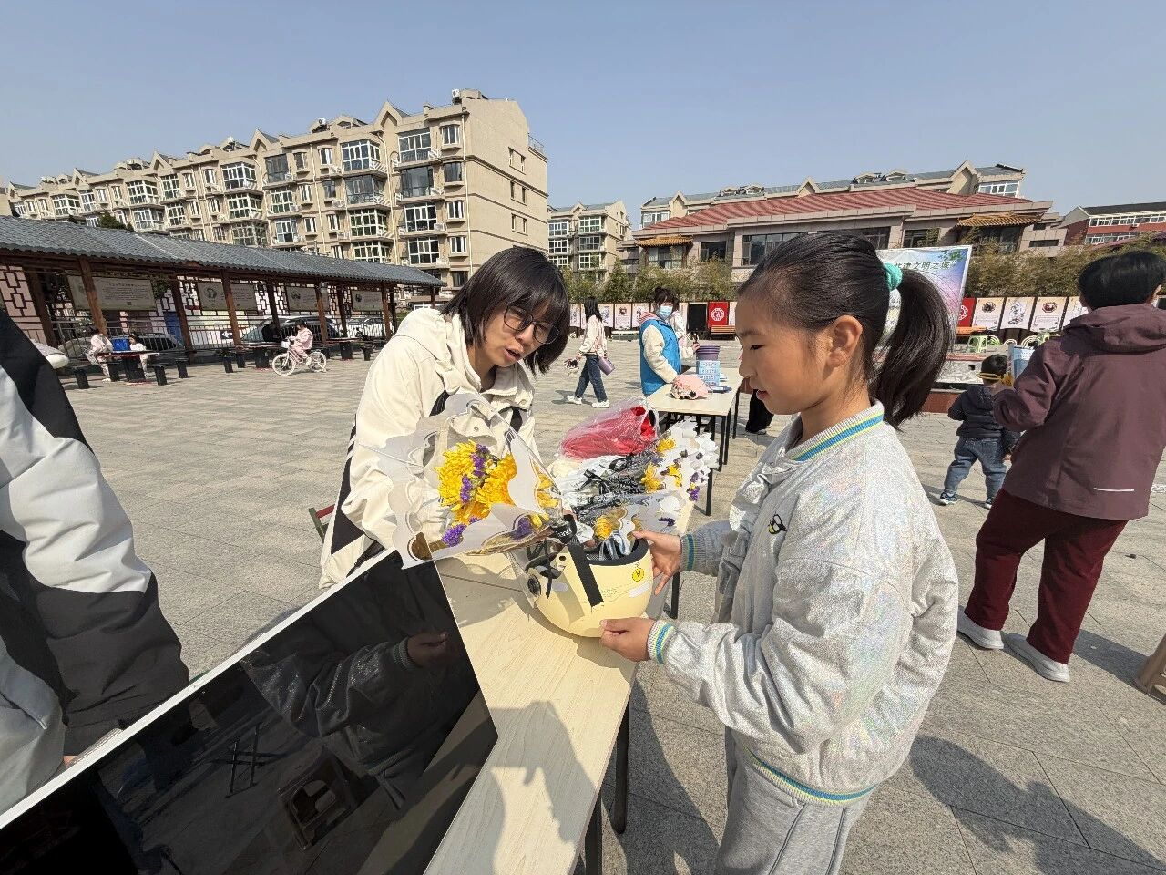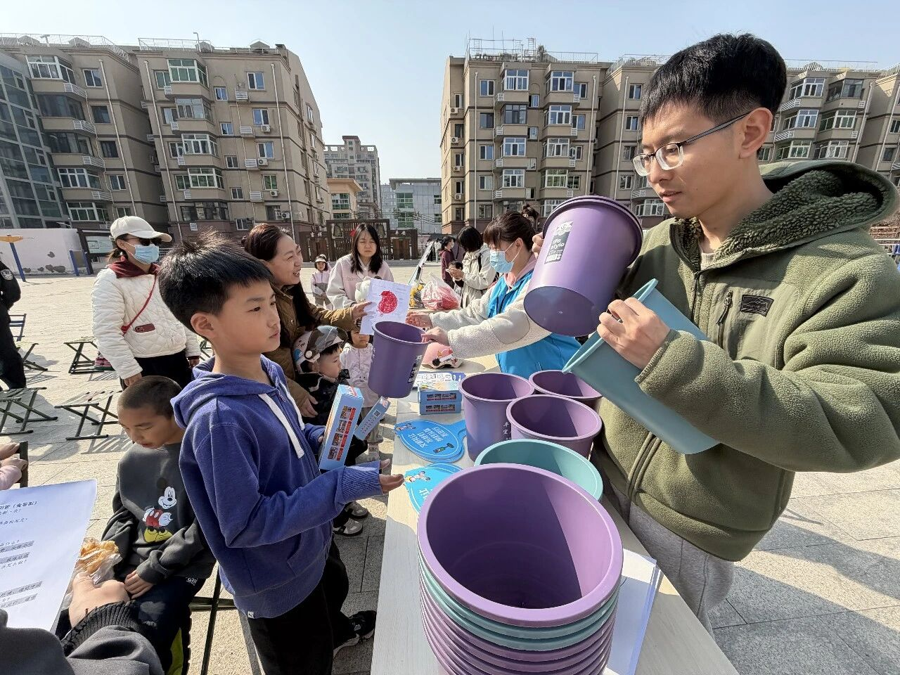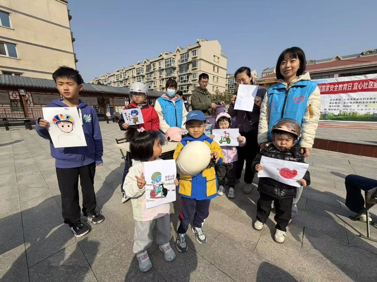 “一盔一带”宣传环节则成为小朋友与家长们的最爱。孩子们兴致勃勃地手持佩戴头盔的画作,兑换了实用垃圾桶。不少小朋友更是特意佩戴头盔到场,自豪领取精美纸抽,在趣味互动中牢固树立了安全出行意识。